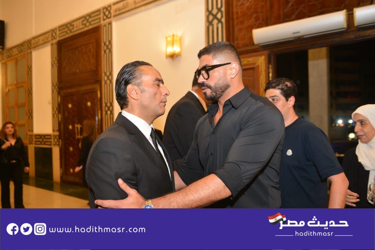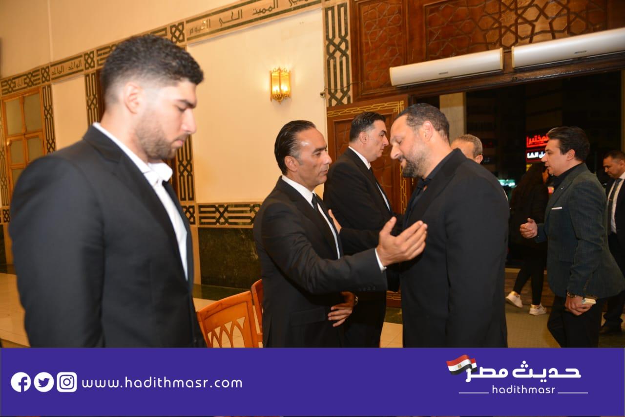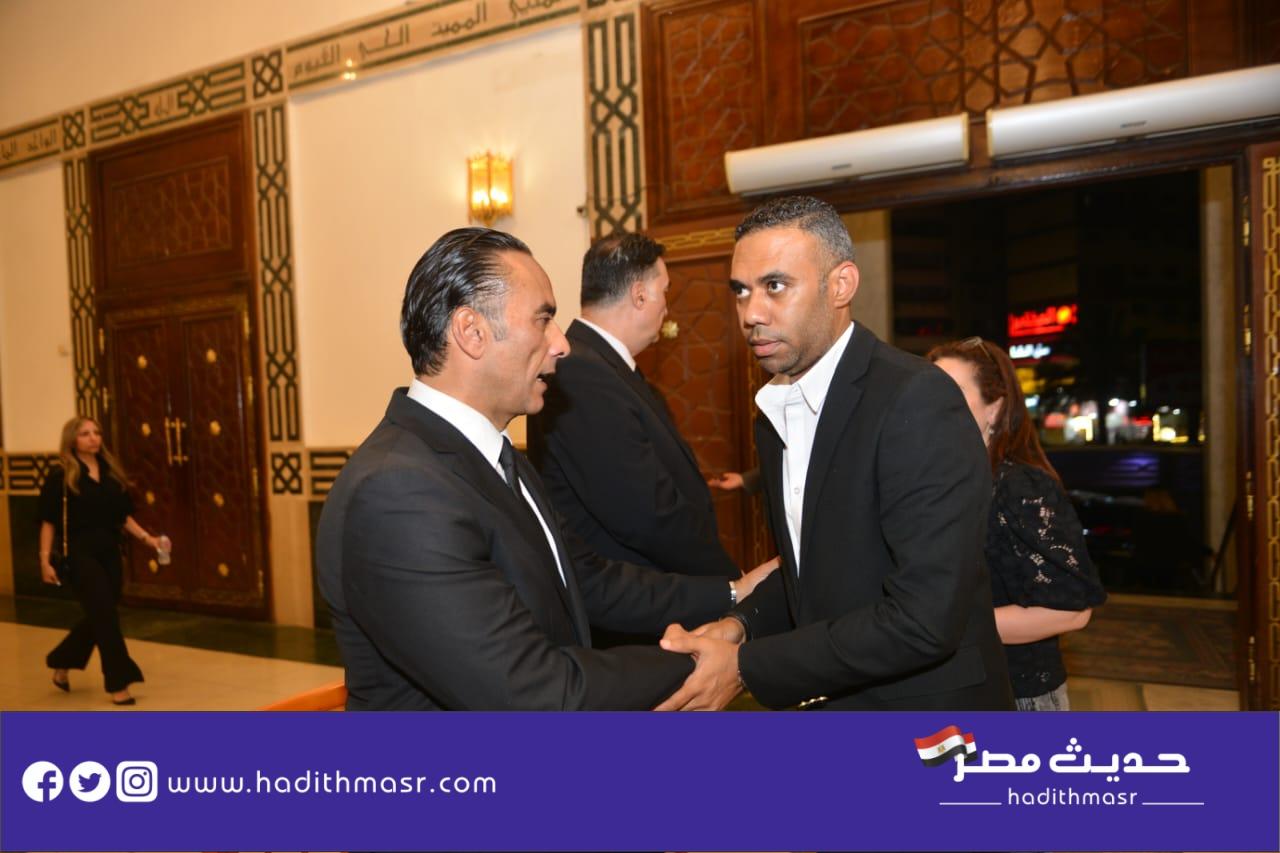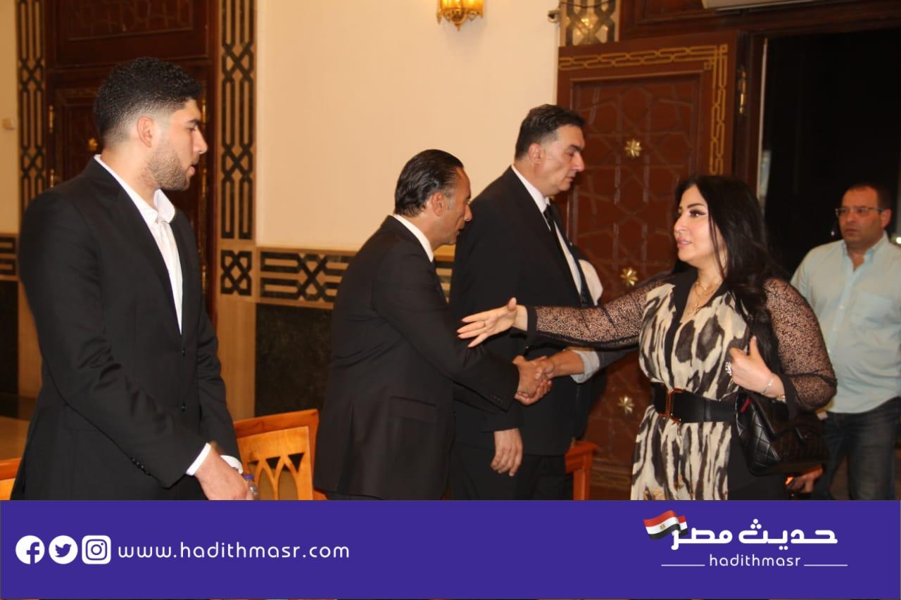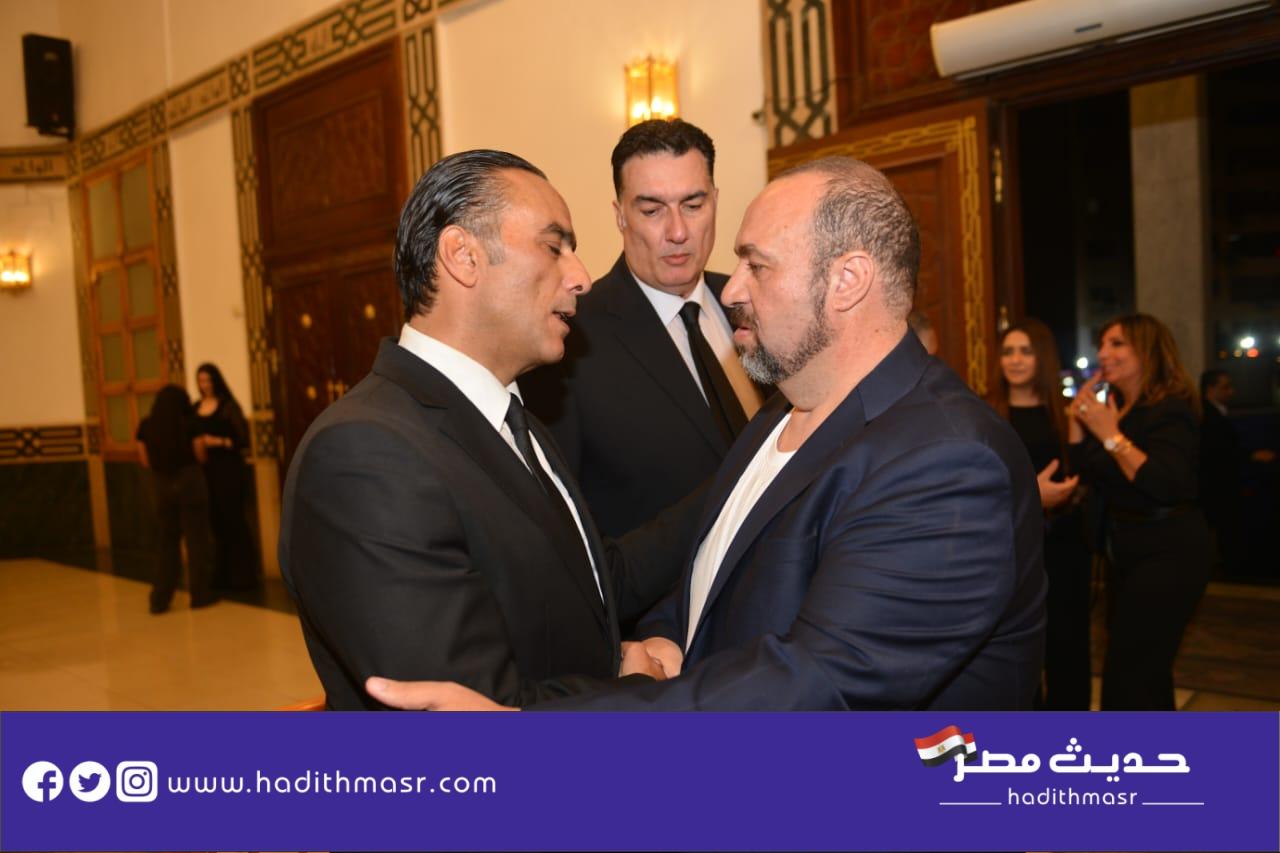 حيث جاء علي رأس الحاضرين الفريق محمد عباس حلمي وزير الطيران المدني وأشرف سالمان رئيس الشركة المتحدة للخدمات الإعلامية والنجم عماد زيادة وحرمه والمحامي الدولي الدكتور خالد أبو بكر وحرمه والمنتج تامر مرسي وحرمه الفنانة نسرين إمام ورجل الأعمال رامي عبد الرؤوف وحرمه الأعلامية ليلاس كفوزي ورجل الأعمال باسل سماقية والدكتور يحي البستاني والمهندس حمدي قوطة عضو الهيئة العليا بحزب الوفد والمستشار السياسي محي بدراوي عضو الهيئة العليا بحزب الوفد والمستشار طاهر الخولي ومصمم الأزياء السعودي منير الخياط ورجل الأعمال مروان أمين واللواء ياسين صيام والكاتب الصحفي محمود المملوك رئيس تحرير مؤسسة القاهرة 24 والمنتج حمدي بدر ورجل الأعمال محمد أبو شادي والكاتب الصحفي خالد صلاح وحرمه الاعلامية شريهان أبو الحسن ورجل الأعمال إبراهيم القاضي وكابتن طيار كريم سلامة والاعلامي أسامة كمال واللواء أبو بكر عبد الكريم والمهندس خالد حجازي وغيرهم