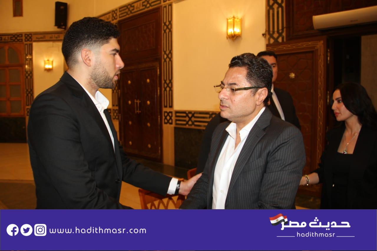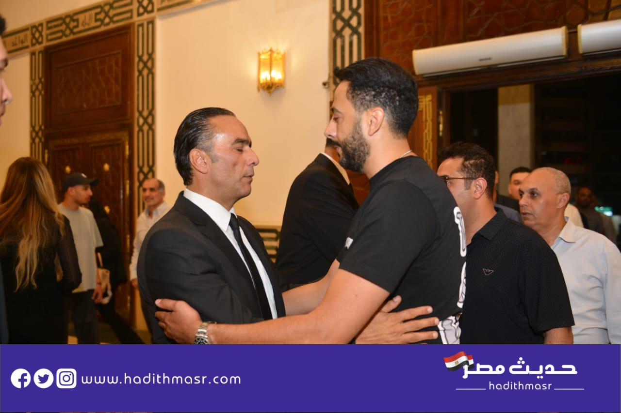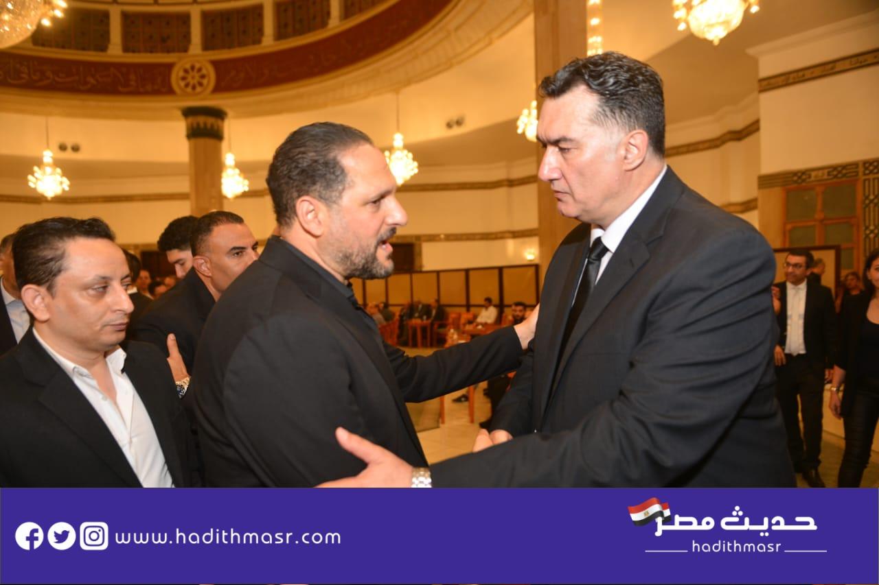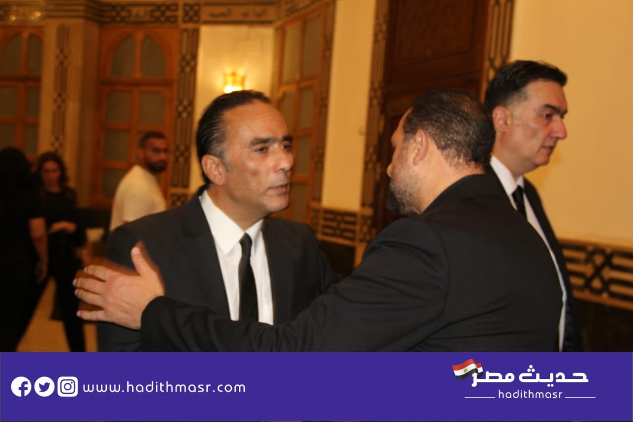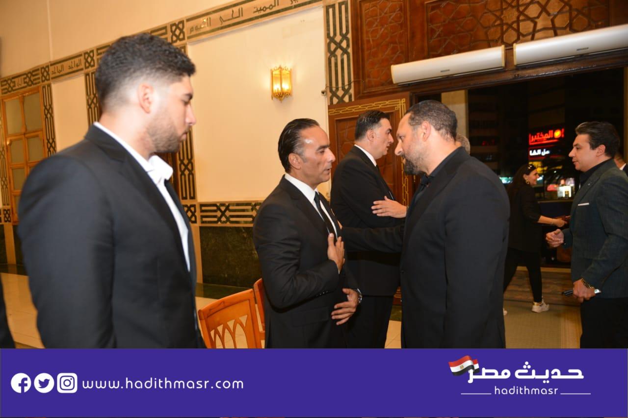 حيث جاء علي رأس الحاضرين الفريق محمد عباس حلمي وزير الطيران المدني وأشرف سالمان رئيس الشركة المتحدة للخدمات الإعلامية والنجم عماد زيادة وحرمه والمحامي الدولي الدكتور خالد أبو بكر وحرمه والمنتج تامر مرسي وحرمه الفنانة نسرين إمام ورجل الأعمال رامي عبد الرؤوف وحرمه الأعلامية ليلاس كفوزي ورجل الأعمال باسل سماقية والدكتور يحي البستاني والمهندس حمدي قوطة عضو الهيئة العليا بحزب الوفد والمستشار السياسي محي بدراوي عضو الهيئة العليا بحزب الوفد والمستشار طاهر الخولي ومصمم الأزياء السعودي منير الخياط ورجل الأعمال مروان أمين واللواء ياسين صيام والكاتب الصحفي محمود المملوك رئيس تحرير مؤسسة القاهرة 24 والمنتج حمدي بدر ورجل الأعمال محمد أبو شادي والكاتب الصحفي خالد صلاح وحرمه الاعلامية شريهان أبو الحسن ورجل الأعمال إبراهيم القاضي وكابتن طيار كريم سلامة والاعلامي أسامة كمال واللواء أبو بكر عبد الكريم والمهندس خالد حجازي وغيرهم