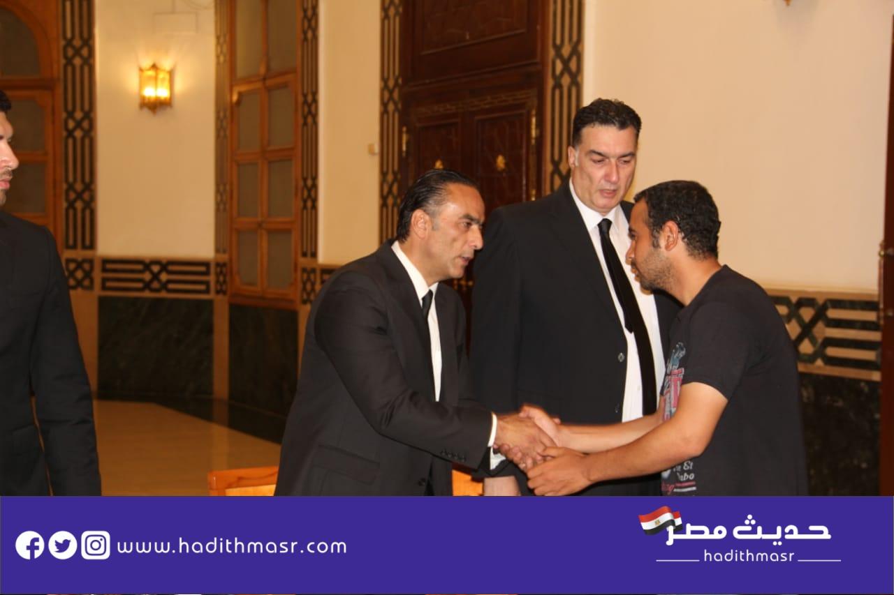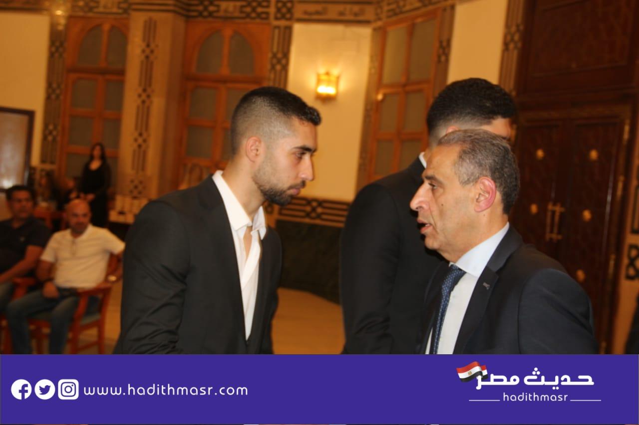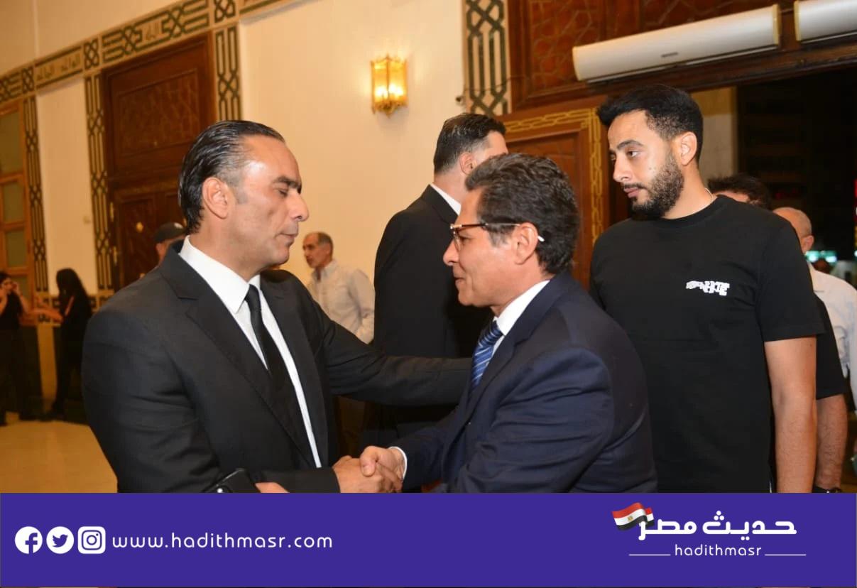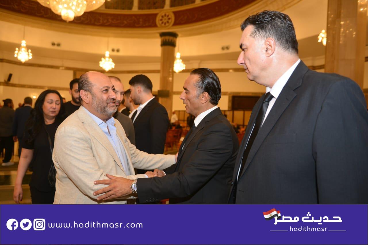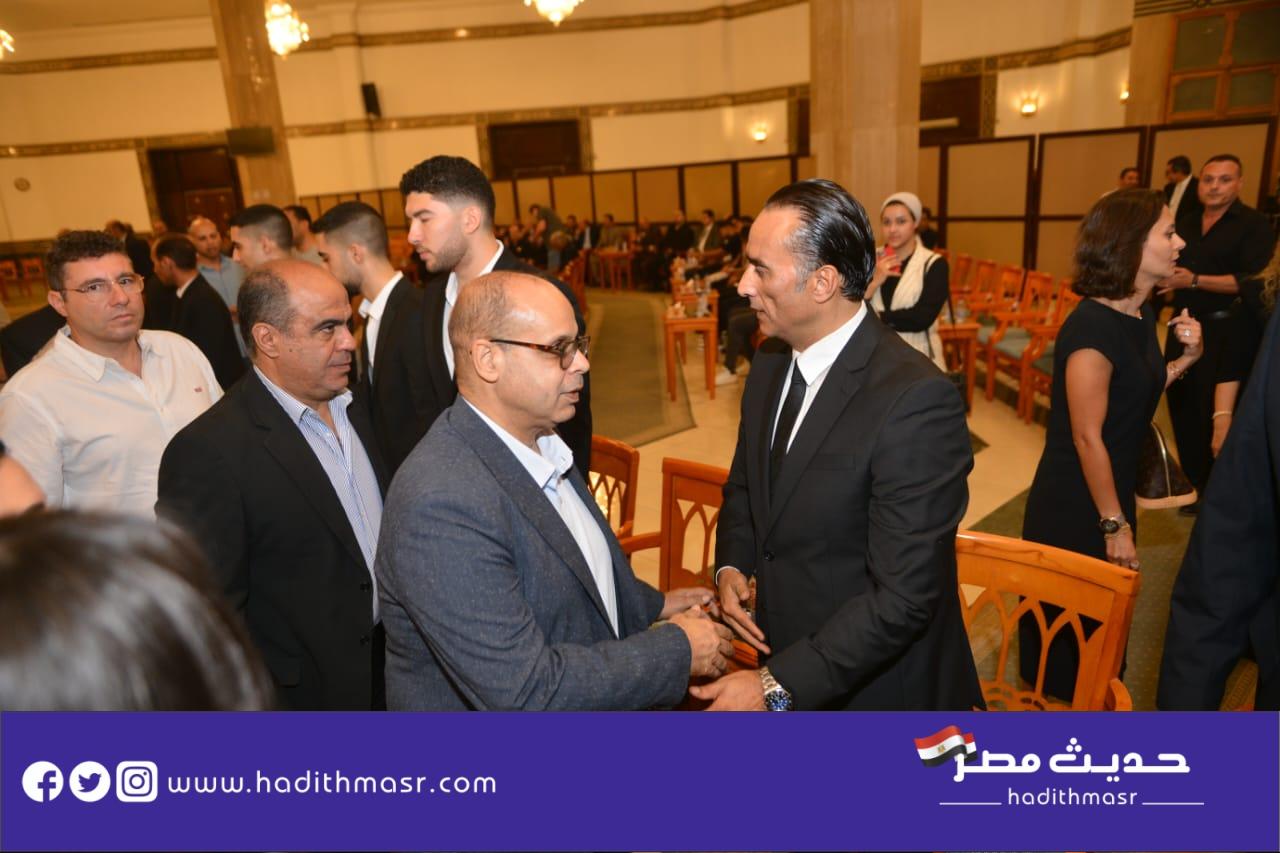 حيث جاء علي رأس الحاضرين الفريق محمد عباس حلمي وزير الطيران المدني وأشرف سالمان رئيس الشركة المتحدة للخدمات الإعلامية والنجم عماد زيادة وحرمه والمحامي الدولي الدكتور خالد أبو بكر وحرمه والمنتج تامر مرسي وحرمه الفنانة نسرين إمام ورجل الأعمال رامي عبد الرؤوف وحرمه الأعلامية ليلاس كفوزي ورجل الأعمال باسل سماقية والدكتور يحي البستاني والمهندس حمدي قوطة عضو الهيئة العليا بحزب الوفد والمستشار السياسي محي بدراوي عضو الهيئة العليا بحزب الوفد والمستشار طاهر الخولي ومصمم الأزياء السعودي منير الخياط ورجل الأعمال مروان أمين واللواء ياسين صيام والكاتب الصحفي محمود المملوك رئيس تحرير مؤسسة القاهرة 24 والمنتج حمدي بدر ورجل الأعمال محمد أبو شادي والكاتب الصحفي خالد صلاح وحرمه الاعلامية شريهان أبو الحسن ورجل الأعمال إبراهيم القاضي وكابتن طيار كريم سلامة والاعلامي أسامة كمال واللواء أبو بكر عبد الكريم والمهندس خالد حجازي وغيرهم