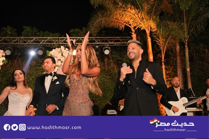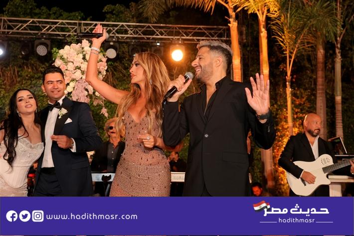 وقدم السوبر استار محمد حماقي مجموعة من الأغاني التي تفاعل معها الحضور، وبعدها حضرت مايا دياب واستقبلها “حماقي” بتحية خاصة ودعاها لمشاركته الغناء، وقبل أن تبدأ مايا دياب الغناء وجهت تحية للشعب المصري على دعمه للشعب اللبناني في الظروف التي يمر بها قائلة: “كتير مهم قبل ما أبدأ أغني باللبناني أغنية للعروس ونرقص الدبكة اللبنانية، أتكلم عن الوضع الصعب اللي بنمر بيه في لبنان ناس كتير من العالم العربي وقفوا معنا وأصدق الرسائل التي وصلت لنا من المصريين ومحبة كبيرة للبنان شكراً لك