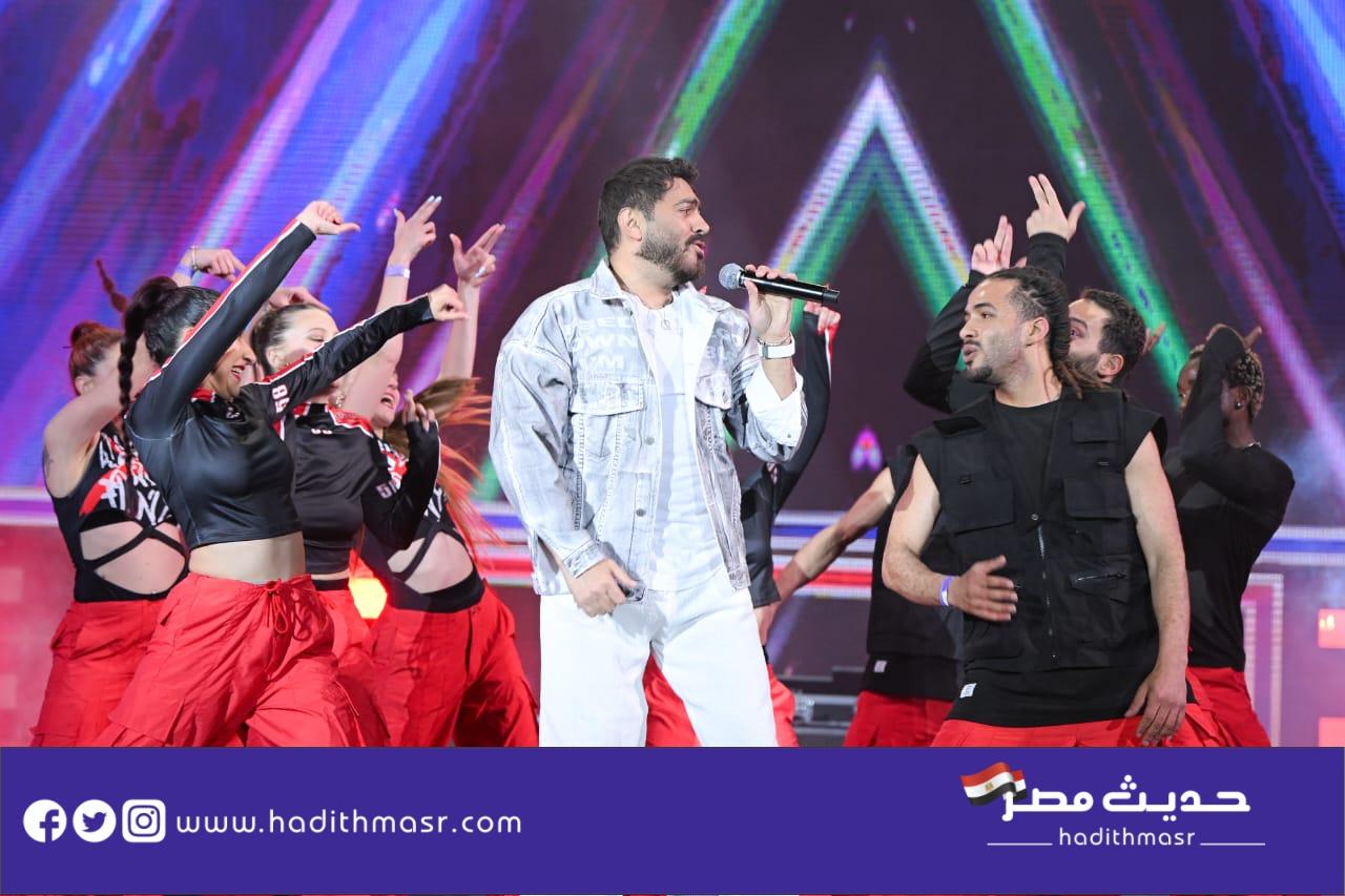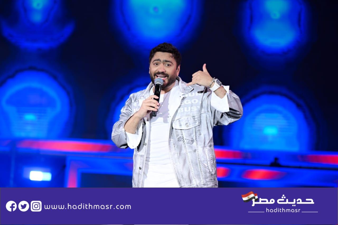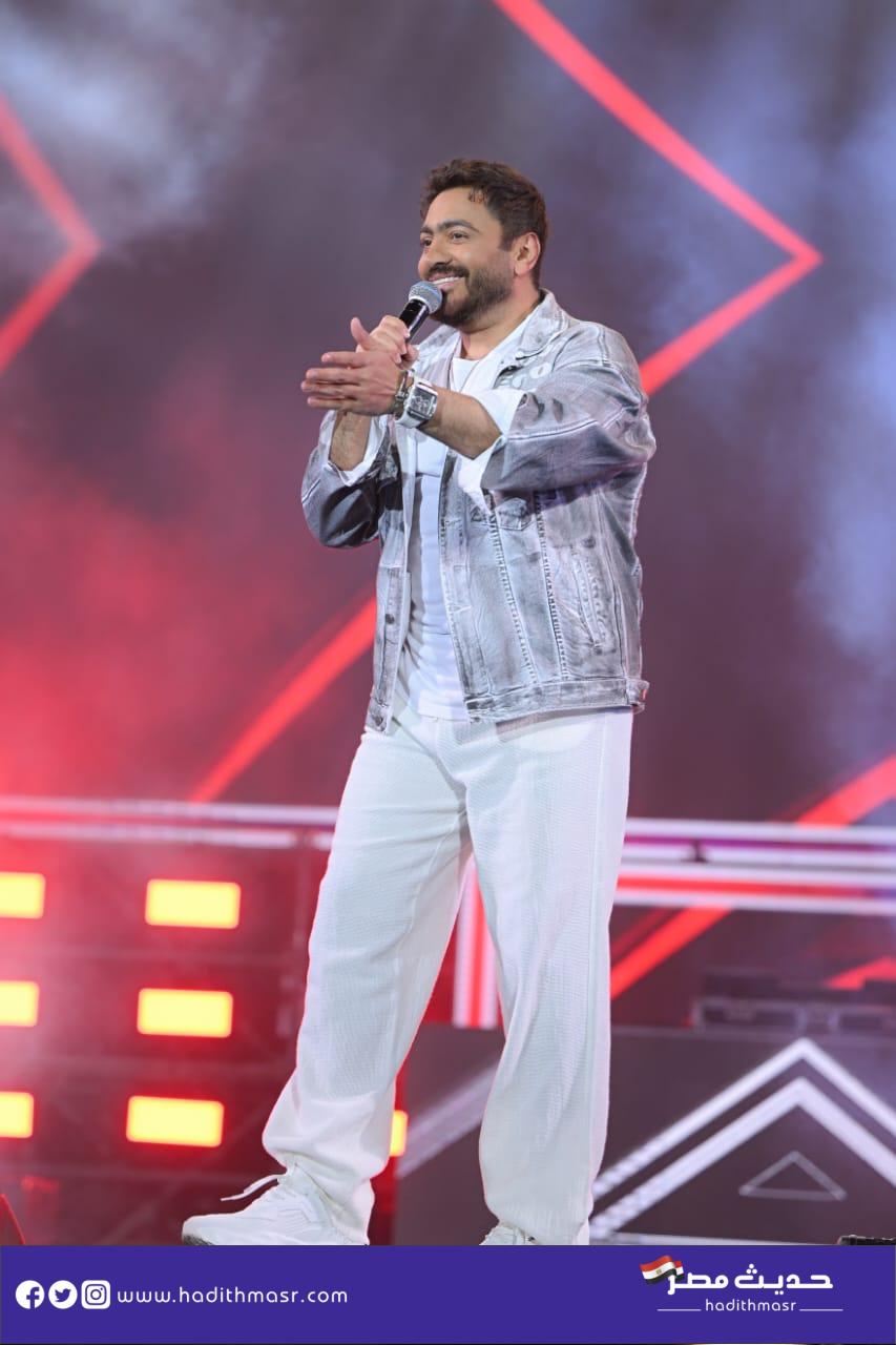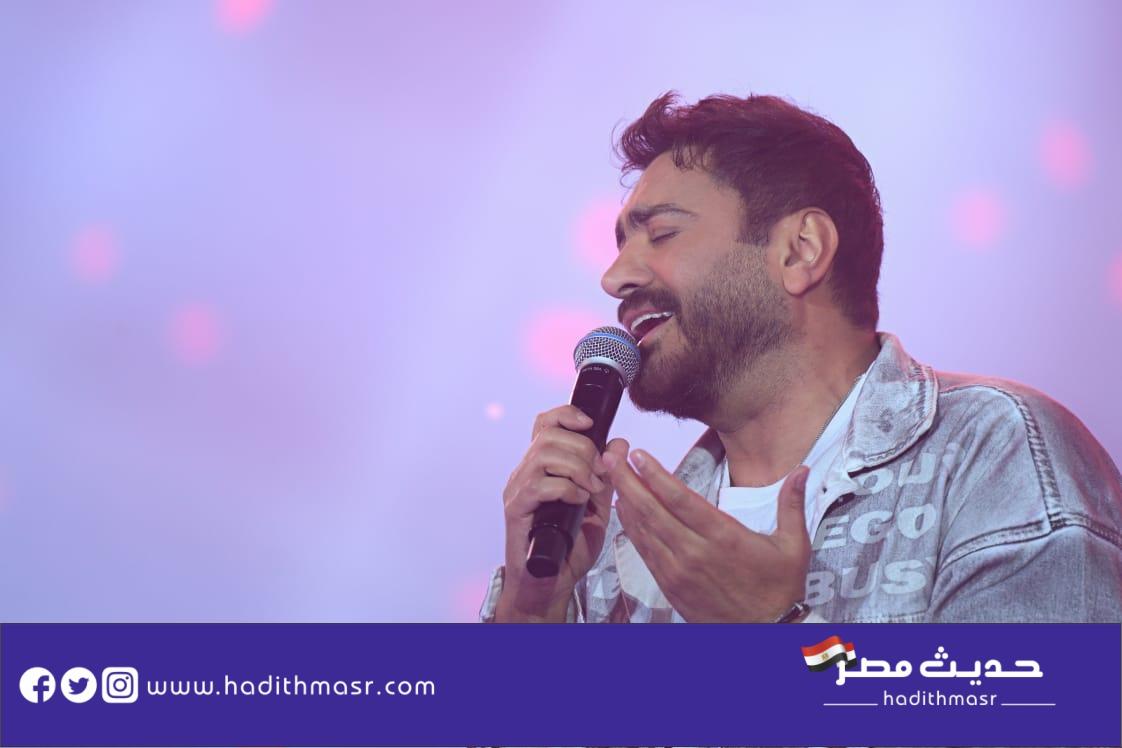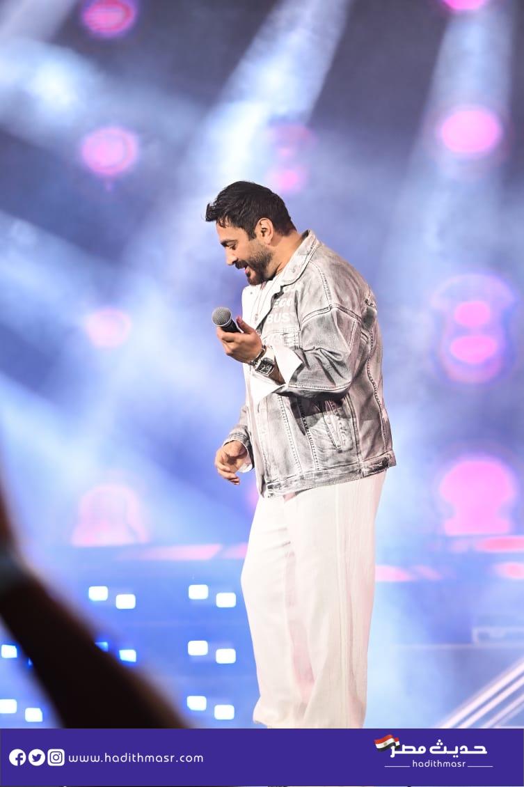 حضر تامر حسني بكامل اناقته مرتديا ملابس كاجوال وكان فى استقباله منظم الحفل مصطفي أبو دشيش “موستيك” وصعد على خشبة المسرح وسط هتافات وصيحات إعجاب الجمهور الذي شاركه غناء “ميدلي” لأشهر أغانيه وسط المزيد من الأجواء الأستثنائية الساحرة