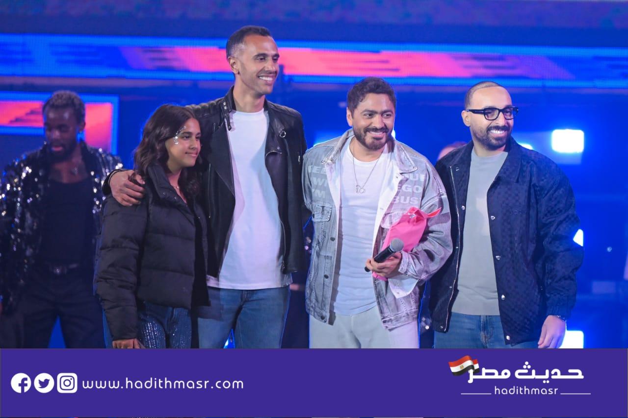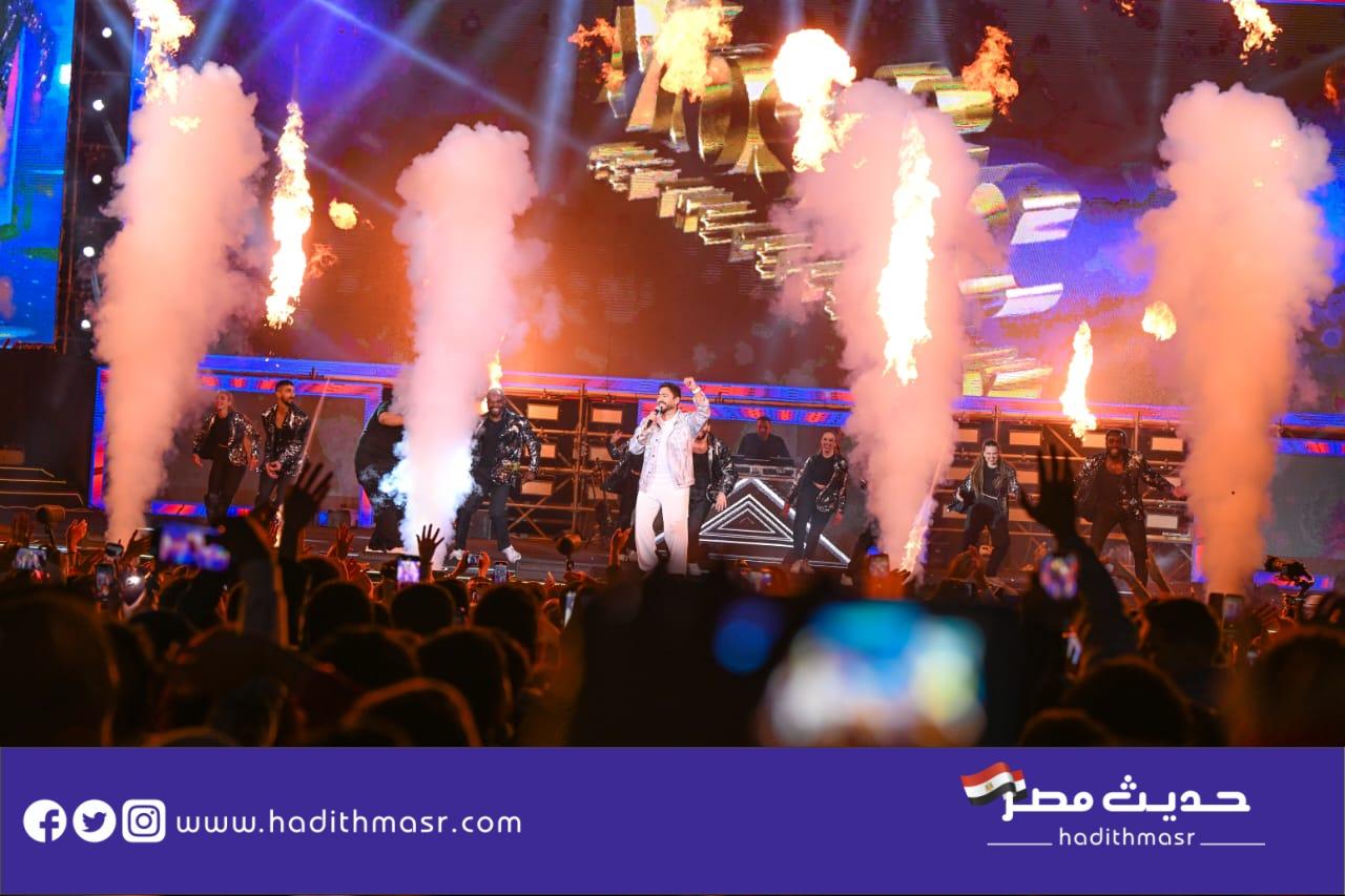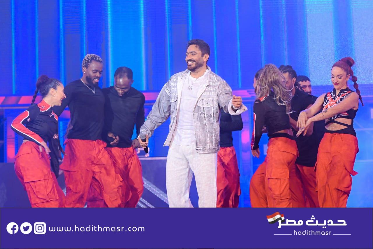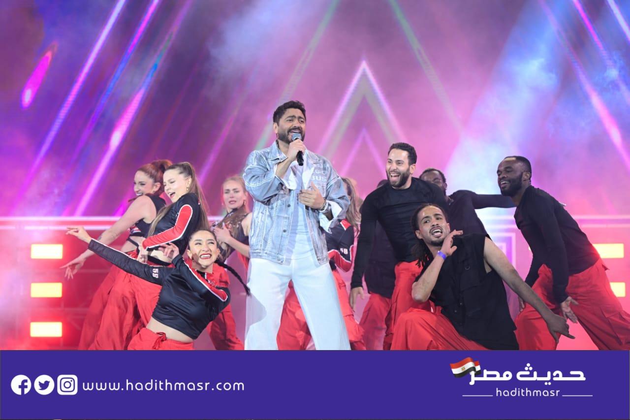 حضر تامر حسني بكامل اناقته مرتديا ملابس كاجوال وكان فى استقباله منظم الحفل مصطفي أبو دشيش “موستيك” وصعد على خشبة المسرح وسط هتافات وصيحات إعجاب الجمهور الذي شاركه غناء “ميدلي” لأشهر أغانيه وسط المزيد من الأجواء الأستثنائية الساحرة