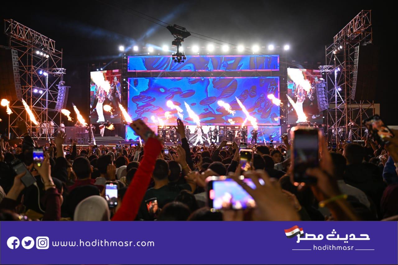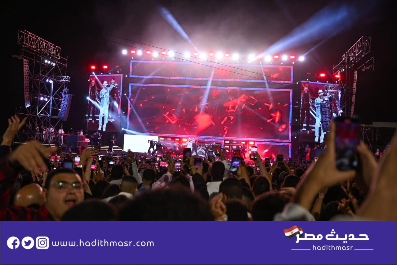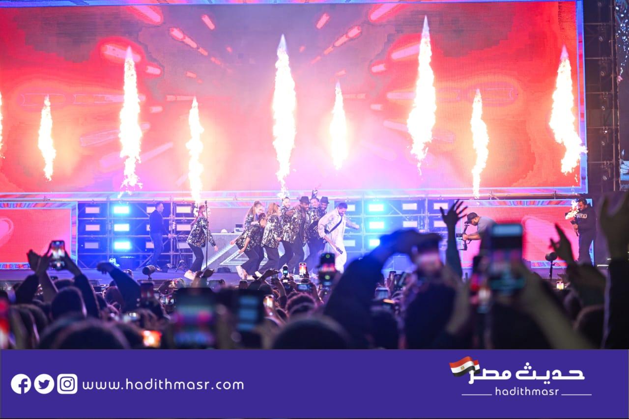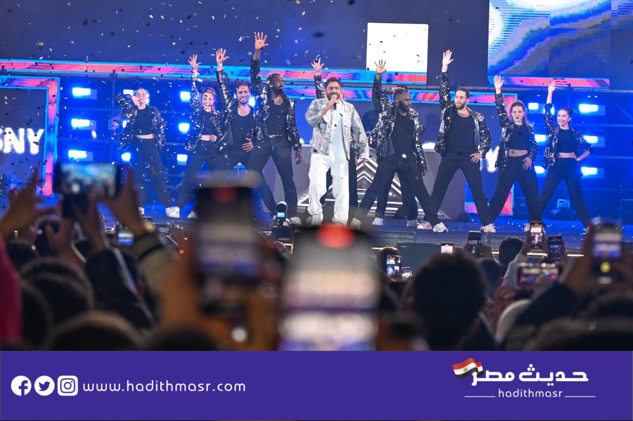 حضر تامر حسني بكامل اناقته مرتديا ملابس كاجوال وكان فى استقباله منظم الحفل مصطفي أبو دشيش “موستيك” وصعد على خشبة المسرح وسط هتافات وصيحات إعجاب الجمهور الذي شاركه غناء “ميدلي” لأشهر أغانيه وسط المزيد من الأجواء الأستثنائية الساحرة