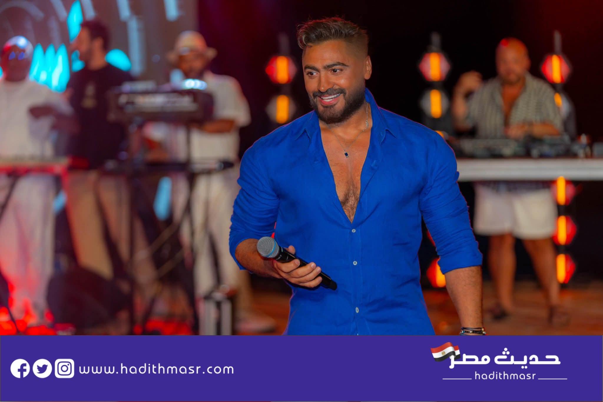 احيا النجم تامر حسني مساء أمس الجمعة حفلا غنائيا ضخما بالساحل الشمالي بحضور جماهيري كبير وسط أجواء استثنائية