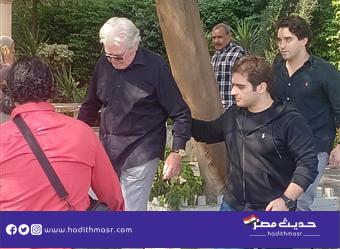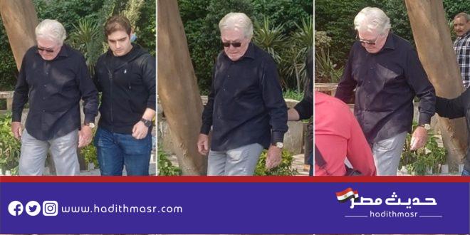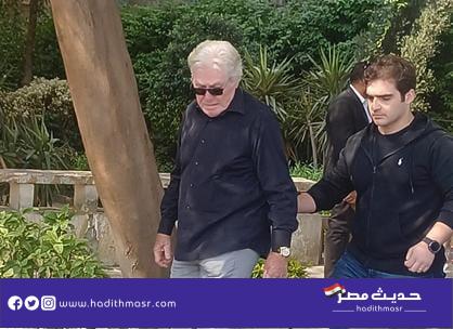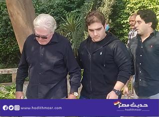 شاهد بالصور | حسين فهمي يبكي خلال تشييع جنازة شقيقه الفنان مصطفى فهمي بمسجد “النيل” بالدقي
