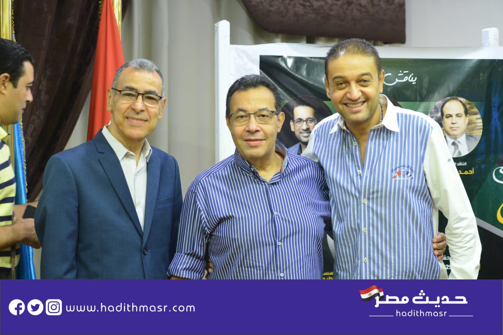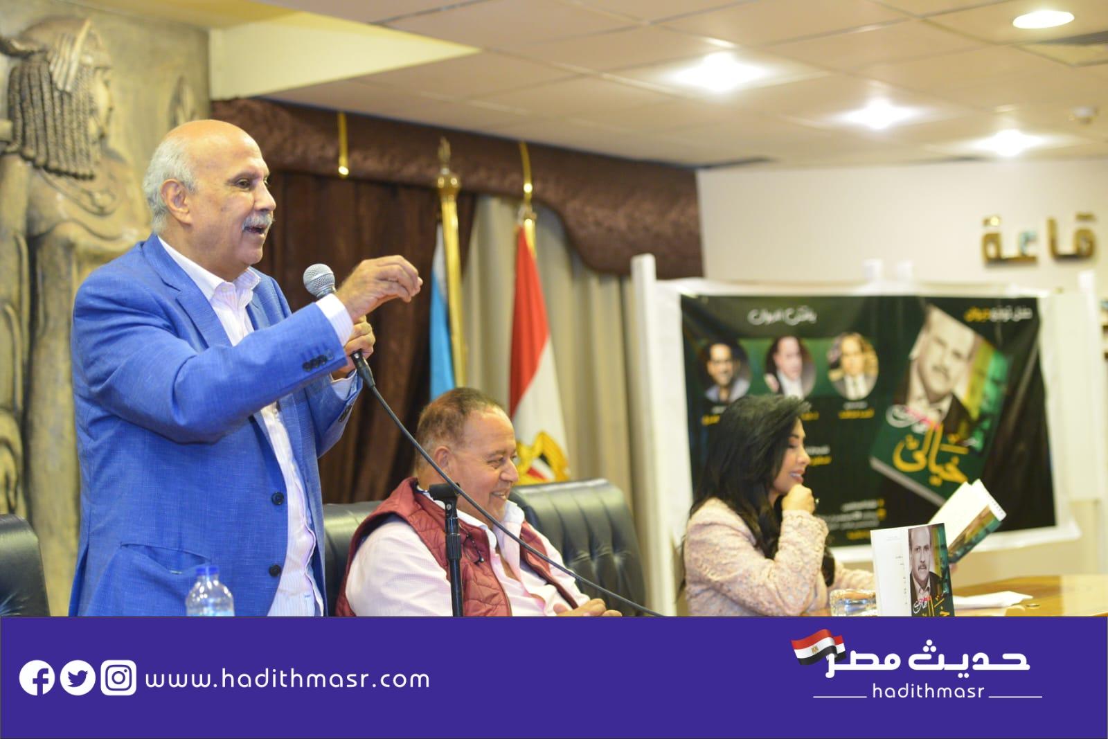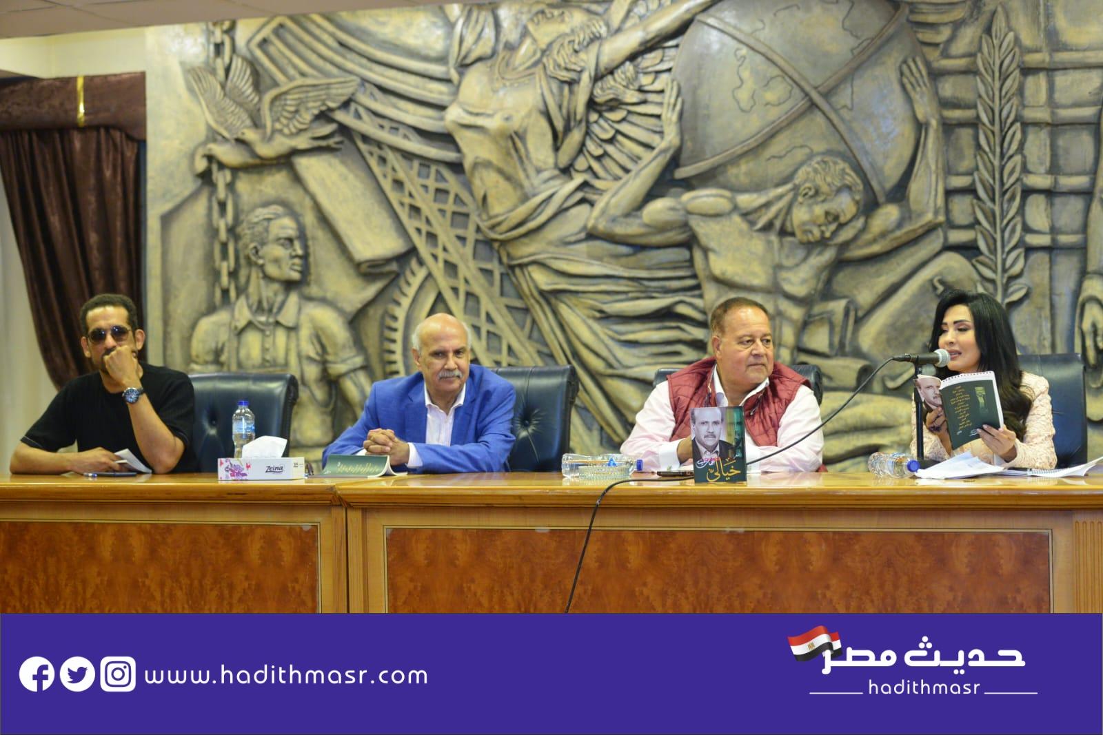 شهد المخرج خالد يوسف وحرمه الفنانة التشكيلية شاليمار شربتلي الندوة التي نظمتها اللجنة الثقافية والفنية بنقابة الصحفيين، لمناقشة وتوقيع ديوان “خيالي” للشاعر الكبير جمال بخيت، والتي أقيمت ضمن فعاليات “معرض نقابة الصحفيين للكتاب