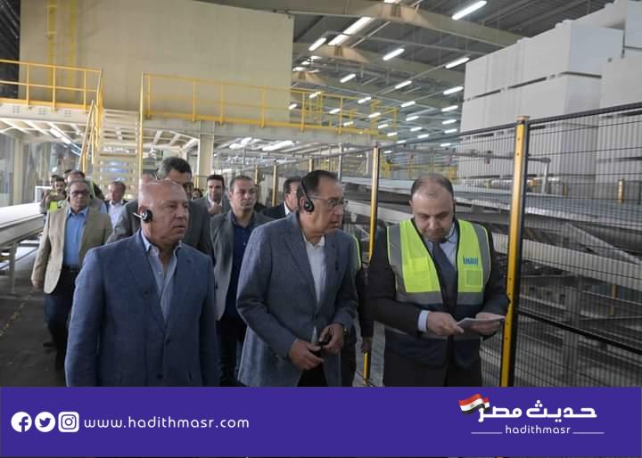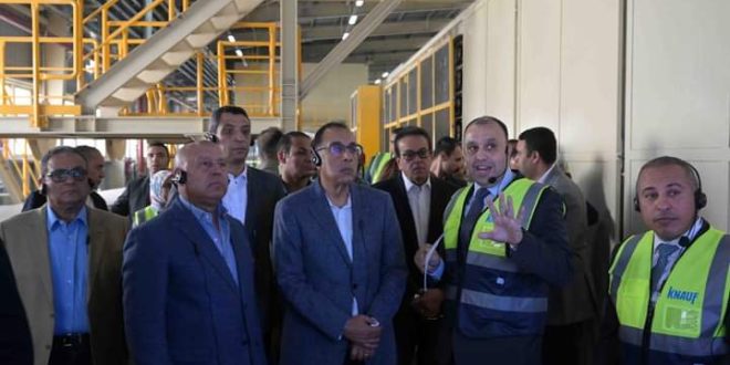 شاهد بالصور | رئيس الوزراء يتفقد مصنع شركة “كناوف” الألمانية للألواح الجبسية خلال زيارته لمحافظة السويس اليوم السبت