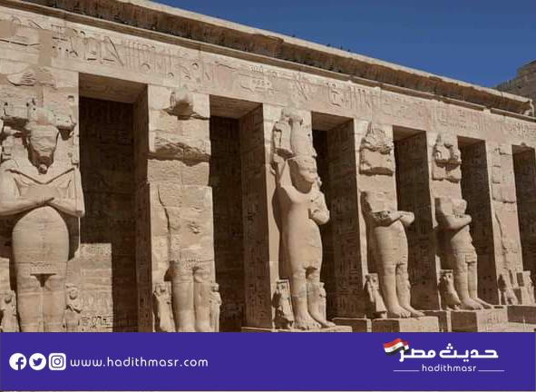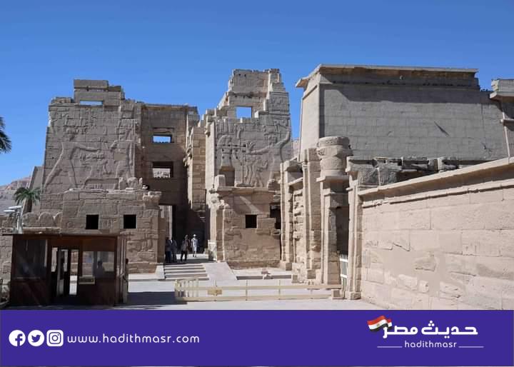 وأشار مدير المعبد إلى أن معبد “هابو” يتكون من فنائين مفتوحين، وينتهي بصالة الأعمدة، ثم قدس الأقداس، موضحا أن جدران المعبد زُينت بمناظر المعارك الحربية التي خاضها الملك، بالإضافة إلى مناظر تمثل تقديمات الملك للآلهة المختلفة وأهمهم ثالوث طيبة (آمون وموت وخونسو).