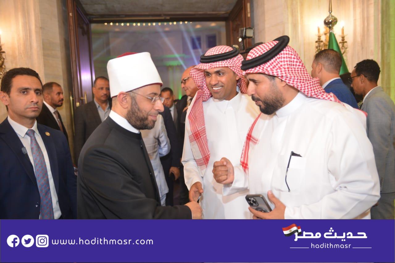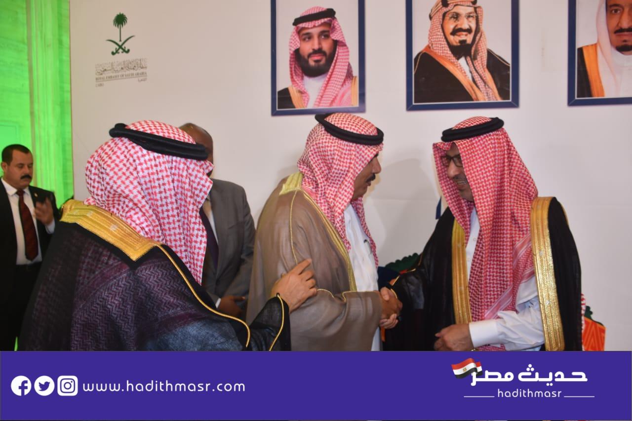 وكان في استقبال الحاضرين السفير صالح الحصيني سفير السعودية بالقاهرة وعبد الرحمن بن سالم الدهاس نائب سفير السعودية بالقاهرة