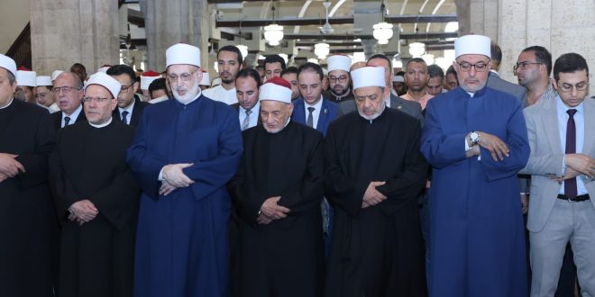 تقدم الدكتور ” أحمد الطيب شيخ الأزهر الشريف ” والدكتور شوقي علام مفتى الجمهورية – جنازة زوجة الدكتور حسن الشافعي عضو هيئة كبار العلماء بالأزهر الشريف وذلك بمسجد الأزهر بوسط القاهرة