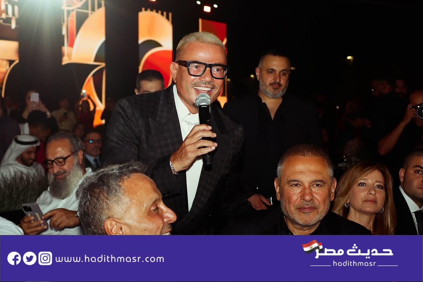 أحيا الفنان الكبير | عمرو دياب مساء أمس الإربعاء حفلًا فنيًا، قدم من خلاله باقة من ألمع أغانيه بحضور عدد كبير من الشخصيات العامة ومشاهير الفن أبرزهم النجم أحمد السقا وماجد المصري ومصمم الأزياء العالمي إيلي صعب والفنانة نيلي كريم والملحن أمير طعيمة والفنانة ياسمين عبد العزيز وغيرهم