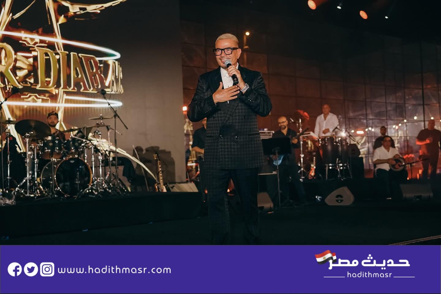 قدّم النجم عمرو دياب خلال الحفل باقة من أشهر أغانيه، التي تفاعل معها الجمهور بحماس كبير، حيث أشاع أجواء من البهجة والسعادة بأغاني يا أنا يا لا، خطفوني، قمرين، العالم الله، ليلي نهاري، نور العين، بابا، وشايف قمر