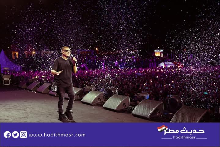 قدم الهضبة خلال الحفل مجموعة متنوعة من الأغاني الجديدة ،وتفاعل معها الحضور بشكل لافت، ثم قدم مفاجأة الحفل ميدلي لمجموعة من أغانيه القديمة منها “تملى معاك وقمرين والعالم الله وحبيبى يا نور العين وليلى نهارى وغلاوتك”، كما تم إطلاق الألعاب النارية في عرض مميز بتوقيع أحمد عصام