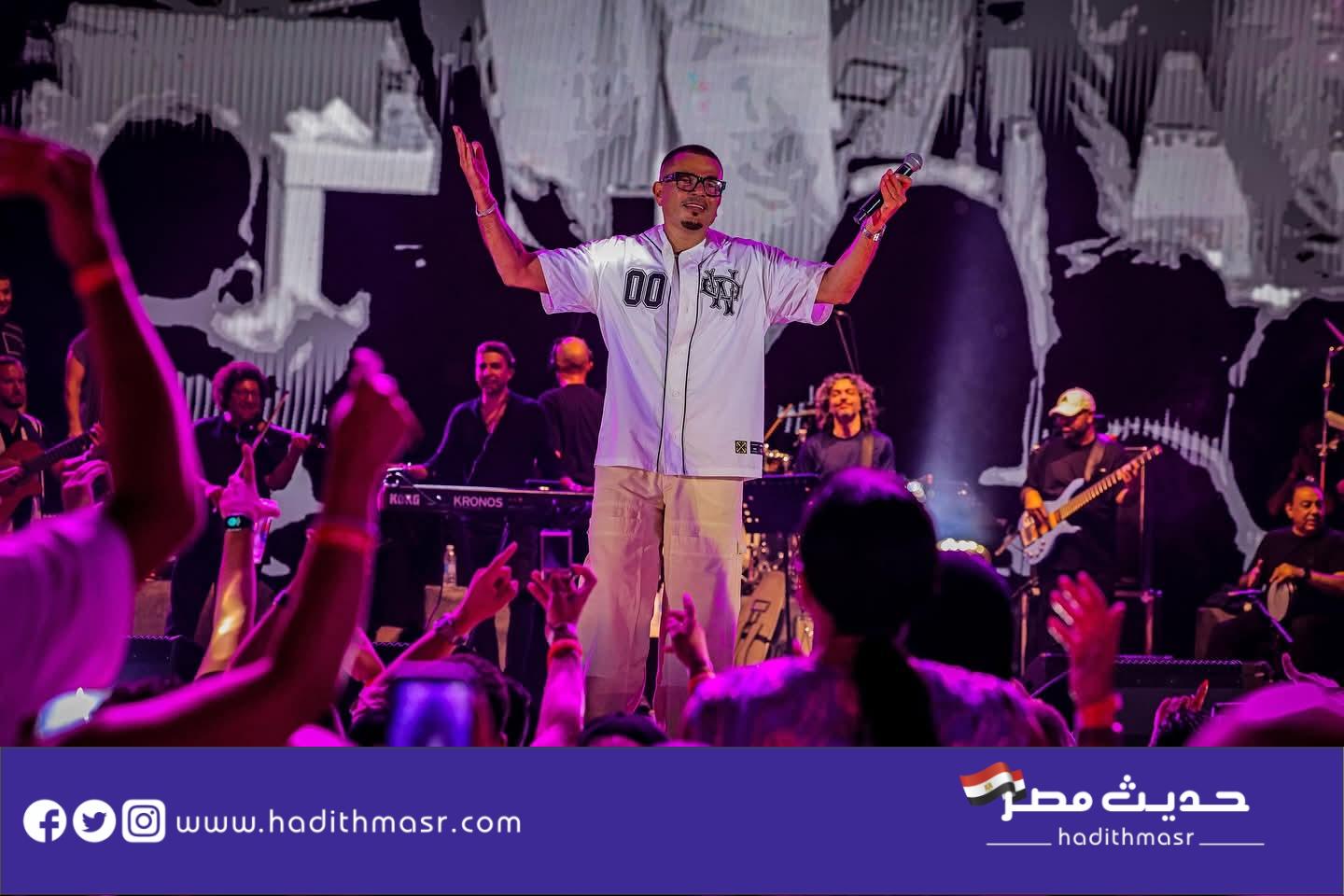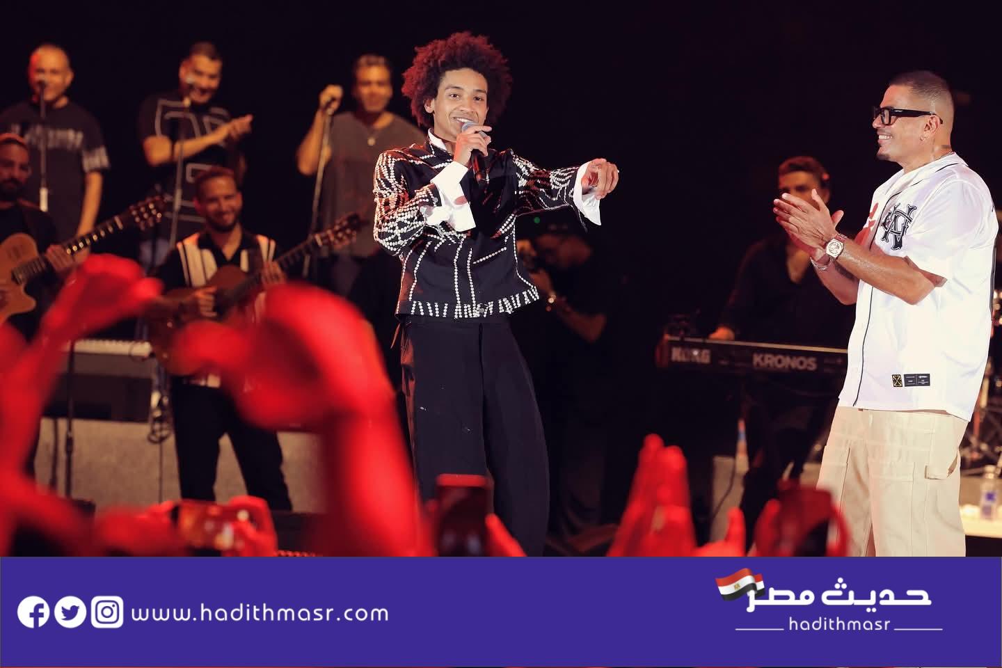 واستقبل الهضبة على المسرح نجله عبد الله والذي كان قد شاركه غناء “يلا” ضمن أغنيات الألبوم ، وقد دعا أيضا الرابر “بدر” المشارك بمقطع الراب في أغنية خطفوني ليؤديها على المسرح.