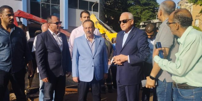 تفقد اللواء أحمد راشد محافظ الجيزة واللواء هشام أبو النصر مساعد أول وزير الداخلية مدير أمن الجيزة أعمال إصلاح الكسر المفاجئ بخط المياه قطر 600 مم بميدان فيني بنطاق حي الدقي وذلك للوقوف على نسب التنفيذ