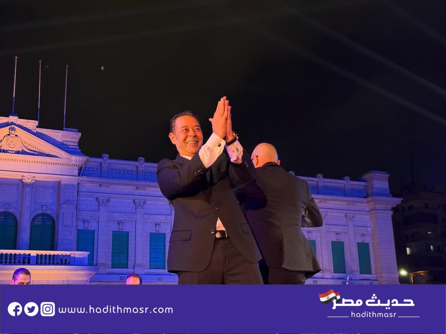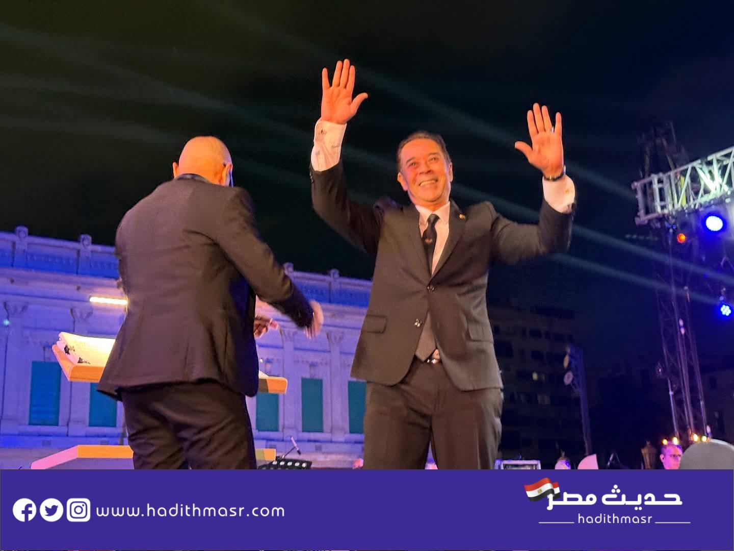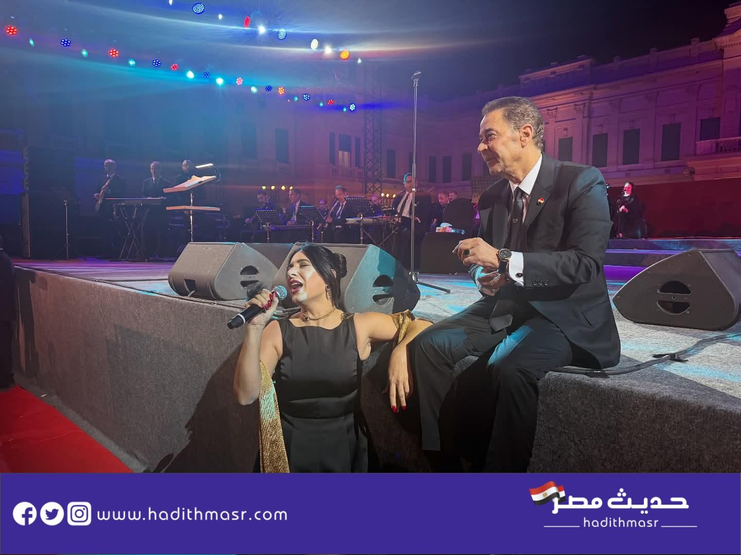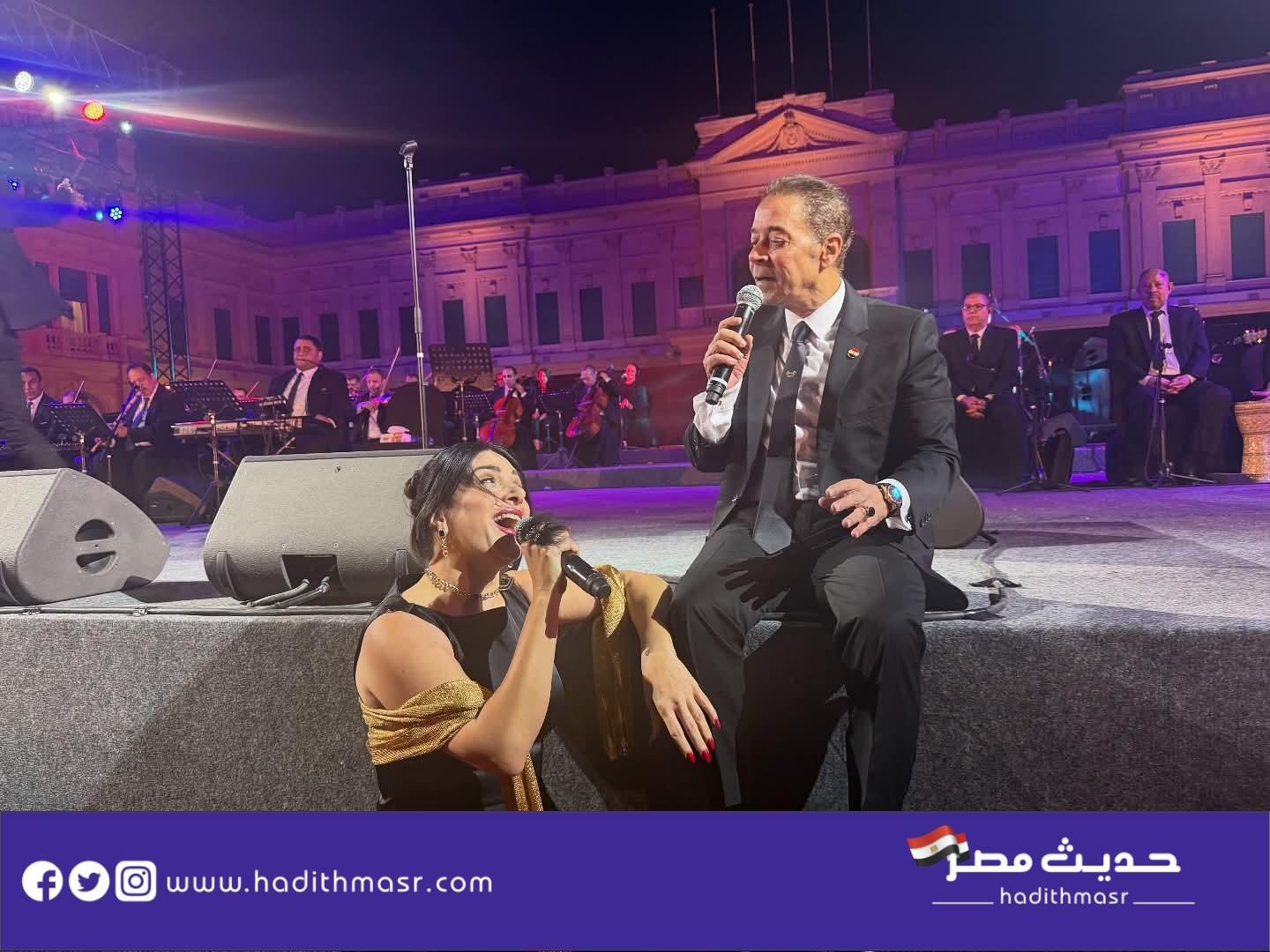 واستقبل الجمهور مدحت صالح وأمال ماهر بموجة من التصفيق؛ حيث قدم خلال الحفل باقة من أشهر أعماله الغنائية ومنها: “زي ماهي حبها، الله يا سيدي، اشتقنا لزمان، حبيبي يا عاشق، المليونيرات، البلياتشو، ماشي في ضلها، قلب واحد، كوكب تاني، النور مكانه في القلوب، ابن مصر”، وغيرها