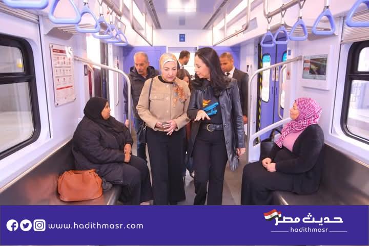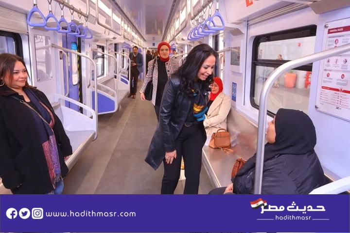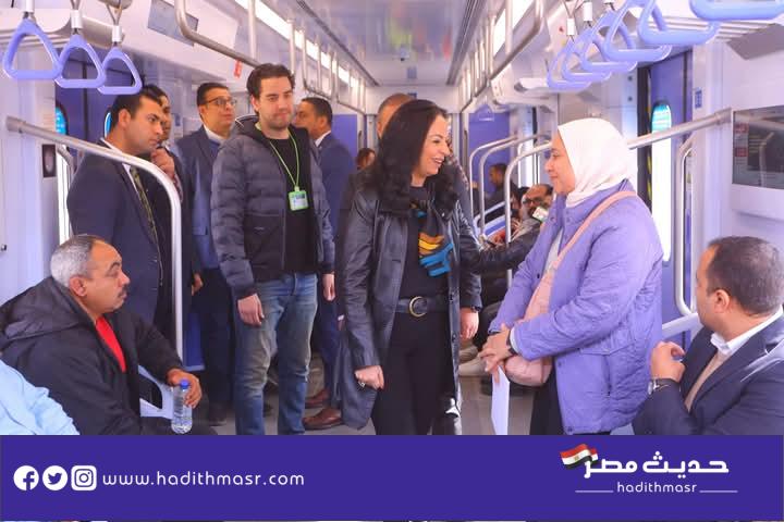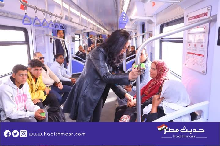 شاهد بالصور | وزيرة التضامن الاجتماعي تستقل القطار الكهربائي لمقر الوزارة في العاصمة الإدارية الجديدة