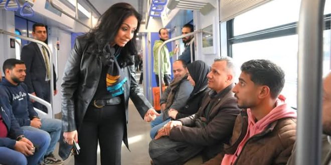 وحرصت وزيرة التضامن الاجتماعي على الاصطفاف في شباك التذاكر للحصول على تذكرة لاستقلال القطار، ثم استقلت إحدى عربات القطار؛ حيث التقت الموظفين الذين يستقلون القطار الكهربائي في طريقهم إلى عملهم بالعاصمة الإدارية الجديدة، وكذلك المواطنين الذين يستقلونه للتنقل بين المناطق المختلفة داخل القاهرة واستمعت إلى آرائهم ومتطلباتهم