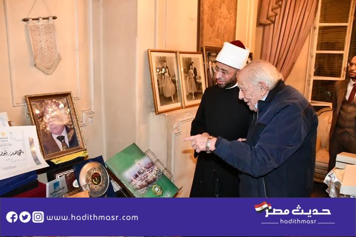 شاهد بالصور | وزير الأوقاف ” يزور الفنان الكبير | رشوان توفيق في منزله الذي يبلغ من العمر 92 عامًا