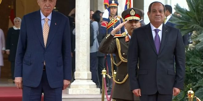 وكان الرئيس عبد الفتاح السيسي والسيدة قرينته ، قد استقبلا قبل قليل الرئيس التركي رجب طيب أردوغان والسيدة قرينته لدى وصولهما إلى مطار القاهرة ظهر اليوم في زيارة هي الأولى من نوعها منذ 12 عامًا.