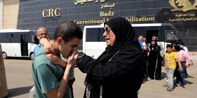 صورة موضوعية لأحد المفرج عنهم ووالدته