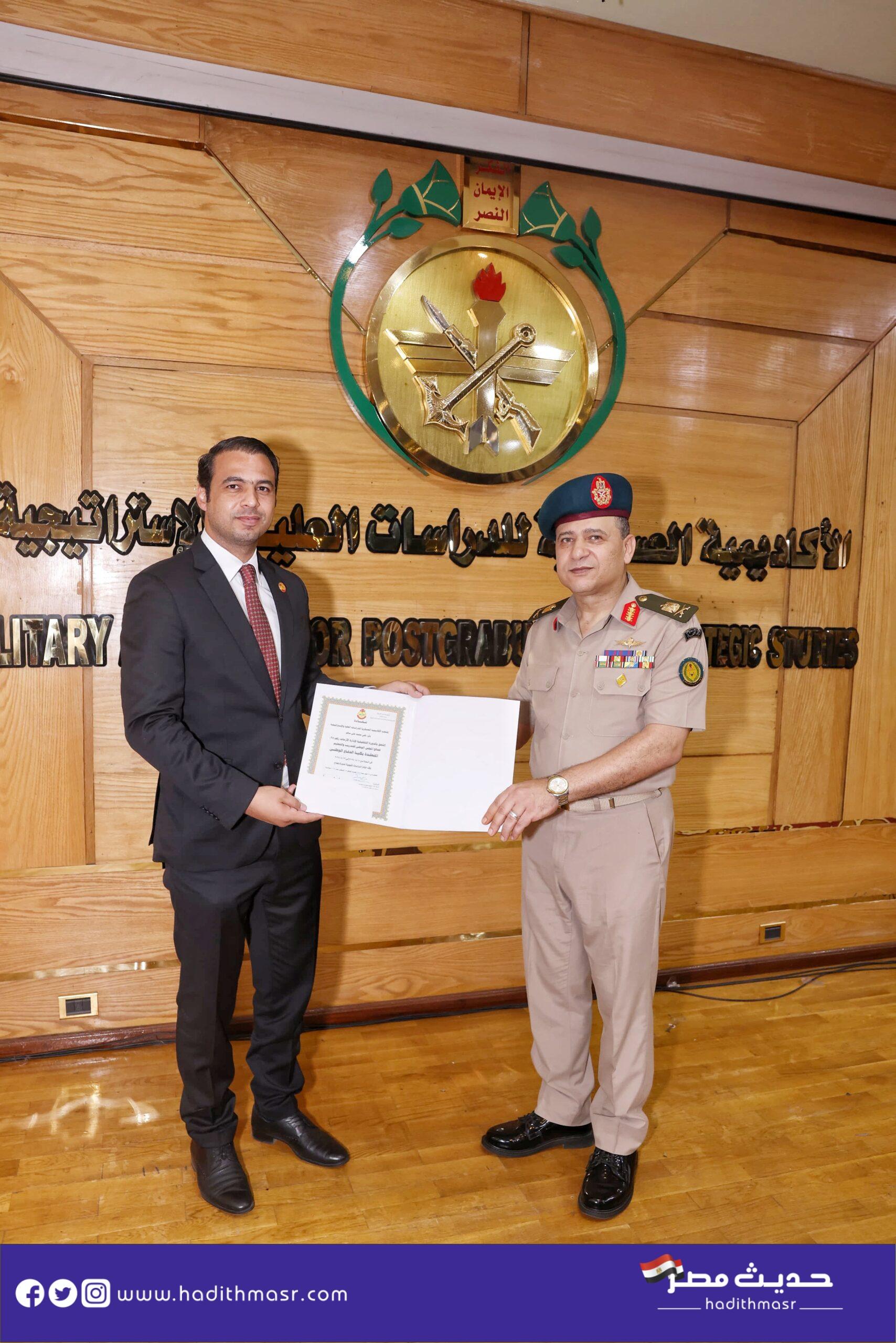 جاء ذلك خلال حفل رسمي شهد حضور قيادات وأعضاء هيئة التدريس بالكلية، حيث تم تكريمه والتقاط صورة تذكارية مع مدير كلية الدفاع الوطني، في لفتة تعكس تقدير المؤسسة العسكرية للمشاركين في برامجها التدريبية المتخصصة