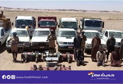 وفى إطار تكثيف جهود قوات حرس الحدود خلال الفترة الماضية على الاتجاه الإستراتيجى الجنوبى تمكنت قوات حرس الحدود من ضبط عدد (42) فردا فى محاولات لتهريب الأسلحة والذخائر وبحوزتهم (56) قطعة سلاح و(4322) طلقة مختلفة الأعيرة و(117) خزنة وتليسكوب ونظارة ميدان، فضلاً عن ضبط فرد وبحوزته (4535) كيلوجرام من المواد المخدرة مختلفة الأنواع، كما تم ضبط عدد (20) فردا فى محاولات لتهريب بضائع غير خالصة الرسوم الجمركية باستخدام عدد (140) عربة