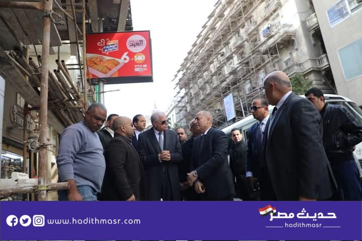 وشملت الجولة كذلك تفقد أعمال رفع كفاءة الشوارع الموجودة بمنطقة البورصة لتخصيصها للمشاة، وكذلك أعمال رفع كفاءة شارع الشريفين والشوارع المحيطة به