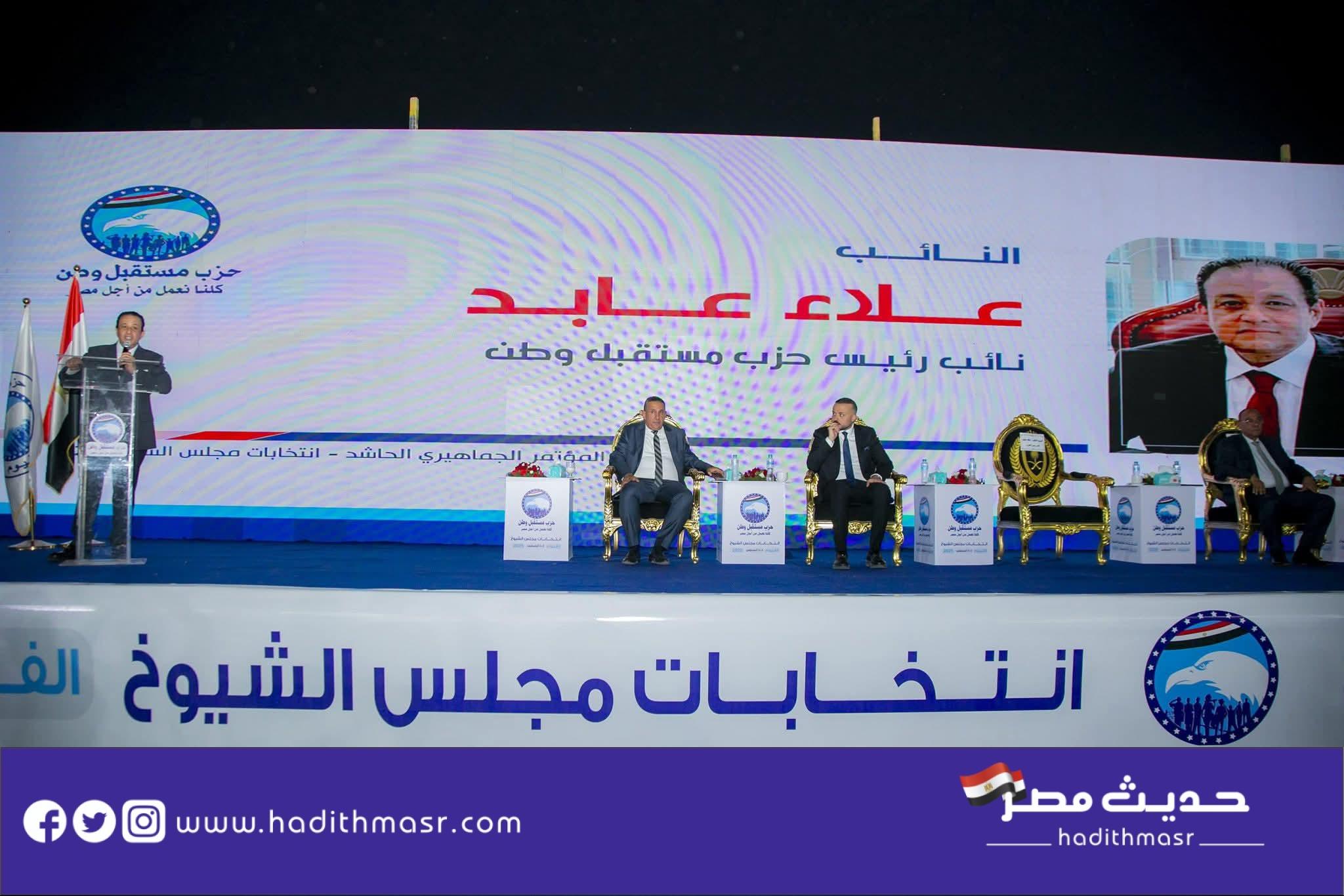 نظمت أمانة حزب مستقبل وطن بمحافظة الفيوم مؤتمر جماهيرى حاشد لدعم مرشحي الحزب في انتخابات مجلس الشيوخ ” الفردي والقائمه، وذلك بحضور المستشار |علاء عابد نائب رئيس حزب مستقبل “رئيس لجنة النقل بمجلس النواب والنائب محمد الجارحي ،الامين العام المساعد للحزب ، وعادل ناصر الامين العام المساعد ، والنائب عبدالقادر الجارحي امين الحزب بالفيوم ، والنائب يوسف الشاذلي امين تنظيم الحزب بالفيوم ، والهيئه البرلمانية للحزب بالفيوم، ومرشحي الشيوخ القائمه والفردي ، والآلاف من المواطنين