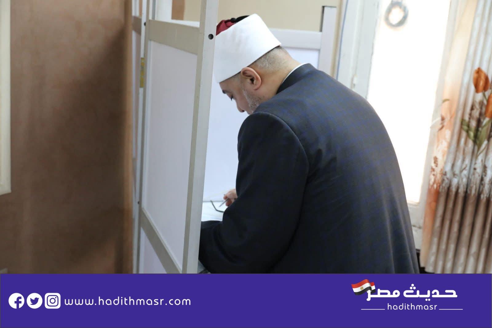 وأكد فضيلة مفتي الجمهورية، عقب الإدلاء بصوته أن المشاركة في هذا الاستحقاق الوطني الجوهري تُعد التزامًا وطنيًّا وتكليفًا شرعيًّا ينبغي لكل مواطن أن يؤديه؛ تعزيزًا لاستقرار الدولة وصونًا لمسارها الدستوري، مشددًا على أن التصويت في الانتخابات يجب أن يكون تعبيرًا نزيهًا عن المصلحة العامة، بعيدًا عن التأثيرات الشخصية أو الاعتبارات الضيقة؛ فصوت كل فرد أمانة عظيمة يُحاسَب عليها أمام الله تعالى