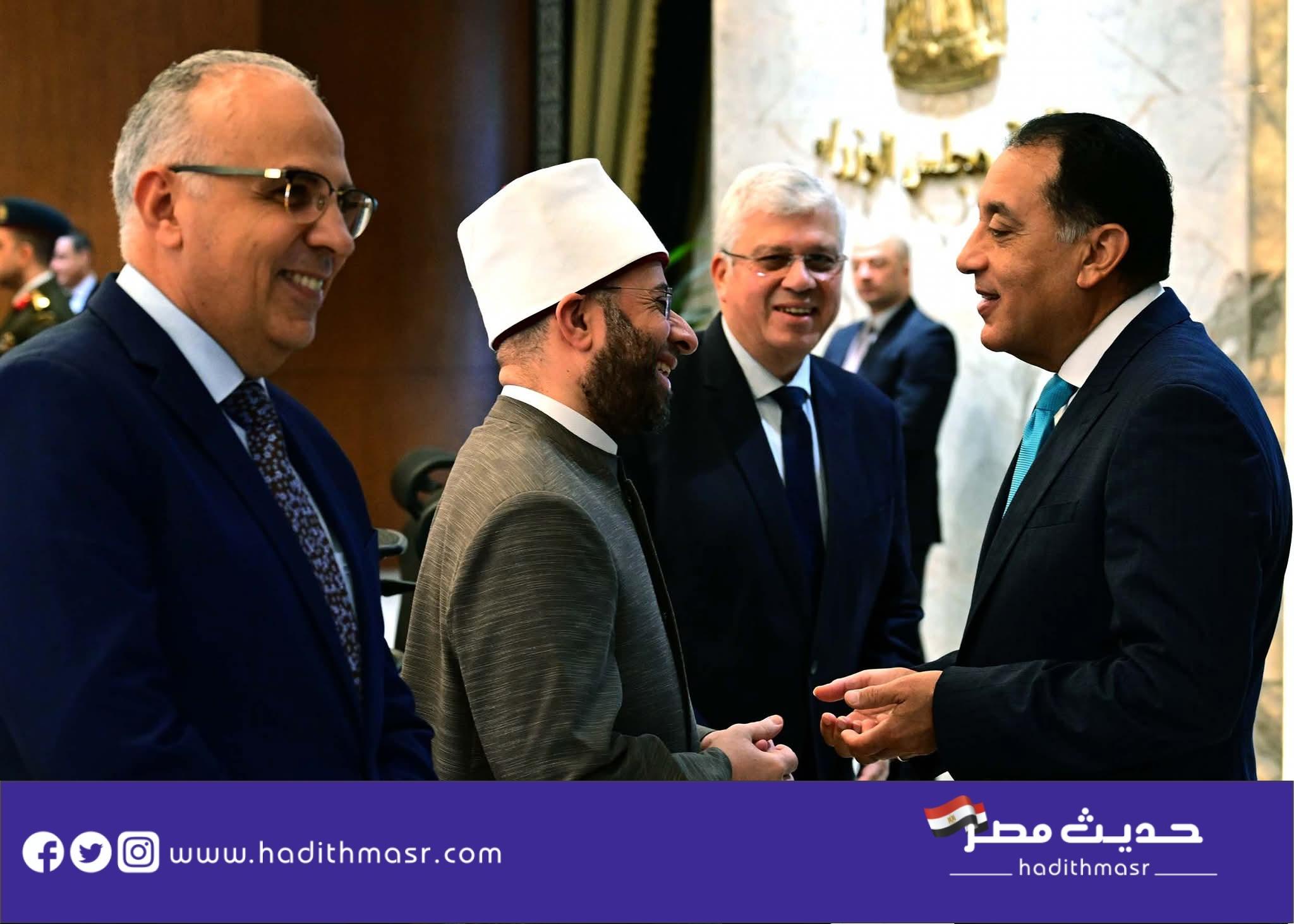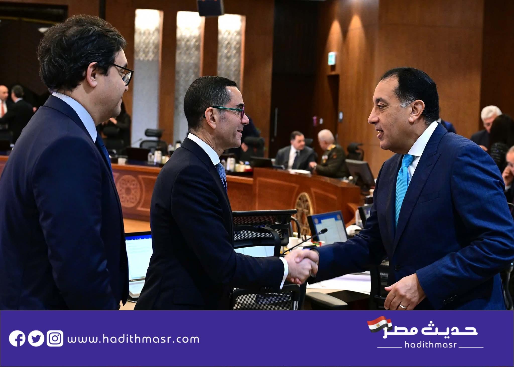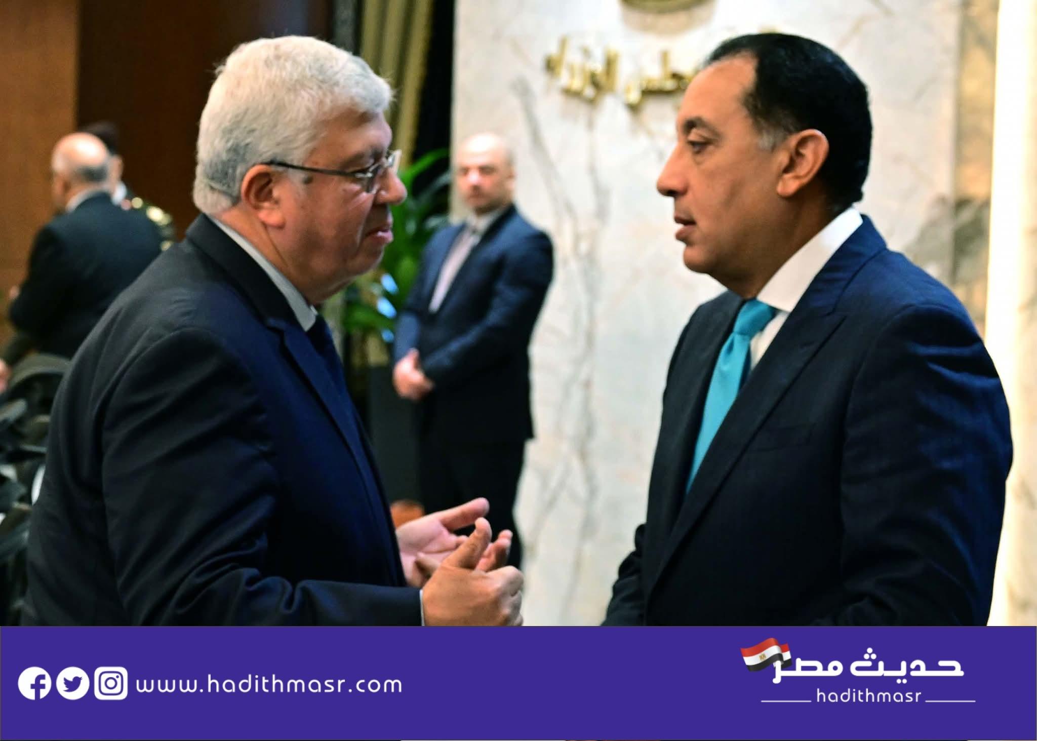 وواصل رئيس مجلس الوزراء حديثه عن نشاطات السيد الرئيس، لافتا إلى استقباله أمس الأول الوزير الأول للجمهورية الجزائرية الديمقراطية الشعبية، مشيرا لتأكيد سيادته على الطابع الاستراتيجي للعلاقات بين مصر والجزائر، وما يجمع البلدين الشقيقين من روابط تاريخية راسخة