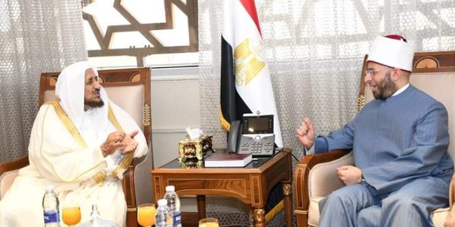 استقبل الدكتور أسامة الأزهري وزير الأوقاف معالي الدكتور عبد الله بن عبد العزيز المصلح الأمين العام للمجلس الإسلامي العالمي للدعوة والإغاثة والأمين العام للهيئة العالمية للإعجاز العلمي في القرآن الكريم والسنة النبوية المطهرة بديوان عام وزارة الأوقاف بالعاصمة الإدارية الجديدة لبحث أوجه التعاون المشترك