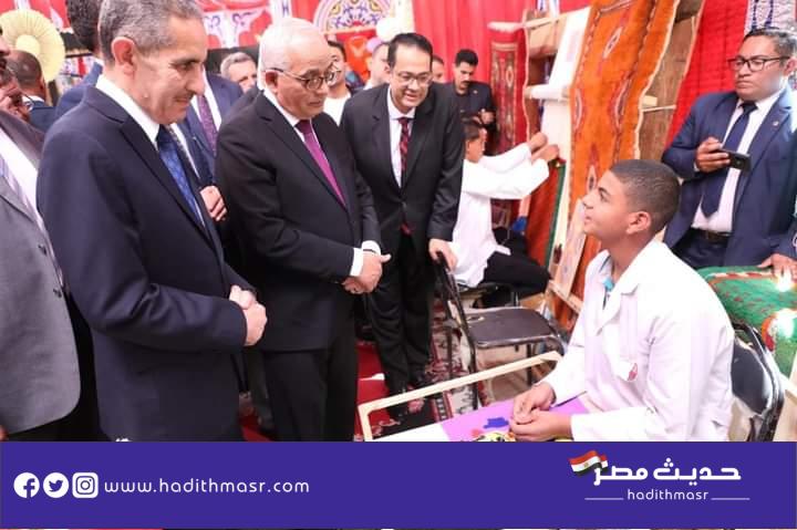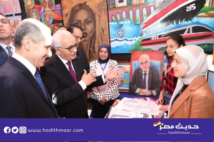 كما أشاد الوزير والمحافظ بالمعروضات والأعمال الفنية في جناح الصناعات الزخرفية للتعليم الفني ومعروضات جناح التربية الفنية لأعمال طلاب التعليم العام، مثمنا الجهود المبذولة لتنمية قدرات وإبداعات الطلاب، لتقديم أعمالهم بصورة متميزة، موجها بإطلاق معرض دائم لتسويق منتجات الطلاب وأعمالهم بأسعار مناسبة
