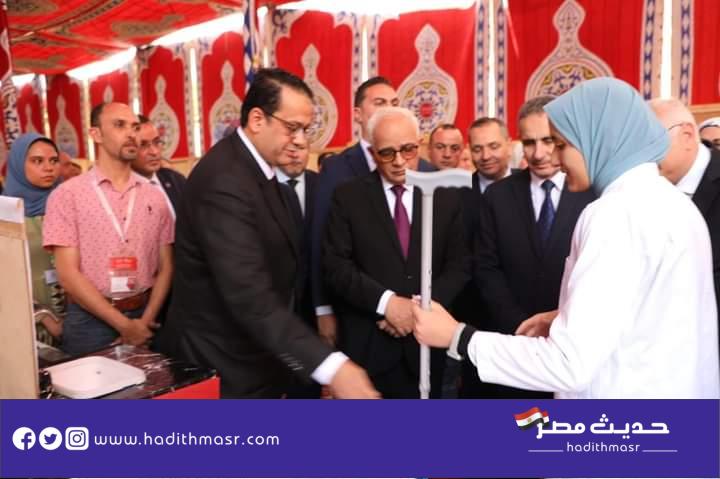 كما شهد الوزير والمحافظ مشروعات طلاب المدارس الفنية التى تخدم البيئة والمجتمع وحرص الوزير على الاستماع إلى شرح الطلاب لمشروعاتهم والتى تضمنت التحكم فى مزلقانات السكك الحديدية أوتوماتيكيا، والتحكم فى الإضاءة بواسطة حلية ضوئية، وقياس مستوى سائل فى خزان مياة، وعصا ذكية لاستخدام المكفوفين، وكرة إطفاء حريق، ووحدة رى تعمل أوتوماتيكيا، ووحدة حريق تعمل أوتوماتيكيا مع حساس دخان، وماكيت حى لمحطة تنقية مياه الشرب، ومجموعة نماذج للبناء والتشطيبات والخرسانة، ونقل وتوزيع القدرة الكهربية، ودائرة الكشف عن تسريب الغاز، ودائرة التحكم فى إنارة الشوارع أوتوماتيكيا، والتحكم فى سرعة محرك، ومشروع تصميم وتنفيذ ثلاجة، ومشروع تصميم وتنفيذ ديب فريزر، ومشروع تصميم وتنفيذ منشار كهربائى، وتصميم جهاز بصمة نيوماتيك، وتصميم نموذج ونش لرفع الاثاث وغيرهم من المشروعات