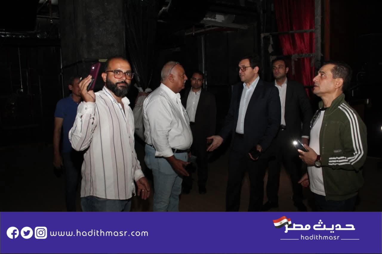 وخلال جولته، تفقد وزير الثقافة المسرح المقام على مساحة ٩٢٥ مترًا مربعًا، ويتكون من خمسة طوابق، ويضم صالة عرض رئيسية مقسّمة إلى صالة أرضية وبلكون علوي بسعة 360 مقعدًا، إلى جانب خشبة مسرح تبلغ مساحتها 245 مترًا مربعًا مجهزة بأحدث التقنيات الفنية الخاصة بإدارة العروض المسرحية، فضلًا عن قاعة عرض صغرى تسع لـ 120 مقعدًا، و16 غرفة للفنانين