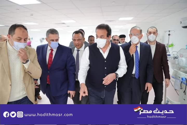 وتابع «عبدالغفار» أن الوزير تفقد غرف المرضى وقسم الحضانات، واطمأن على حالة الأطفال المبتسرين، موجها بتوفير عدد 7 حضانات إضافية لترتفع الطاقة الاستيعابية إلى 17 حضانة، كما تفقد الوزير وحدة الغسيل الكلوي، موجها باستبدال الأسرة بالكراسي المخصصة لجلسات الغسيل الكلوي، وذلك لضمان تقديم الخدمة لعدد أكبر من المرضى