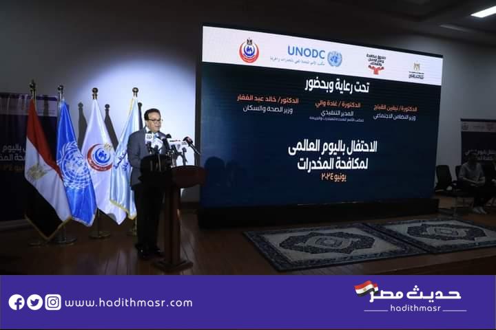 جاءت كلمة الوزير خلال الاحتفال بفعاليات اليوم العالمي لمكافحة المخدرات، داخل مركز إمبابة لعلاج الإدمان، بحضور الدكتورة منن عبدالمقصود الأمين العام للأمانة العامة للصحة النفسية، والدكتور عمرو عثمان مدير صندوق علاج ومكافحة الإدمان، وممثلين من الجهات المعنية بملف مكافحة الإدمان، وحضور بارز لنماذج من متعافي الإدمان.
