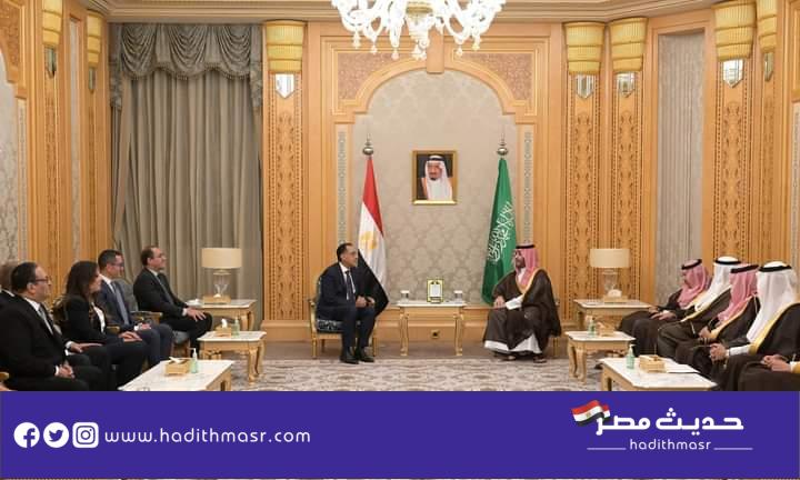 استقبل صاحب السمو الملكى، الأمير محمد بن سلمان، ولى العهد، رئيس مجلس وزراء المملكة العربية السعودية، مساء اليوم بالعاصمة السعودية الرياض، الدكتور مصطفى مدبولي، رئيس مجلس الوزراء، لبحث عدد من الملفات ذات الاهتمام المشترك، وذلك بحضور السيد/ أحمد كجوك، وزير المالية، والمهندس/ حسن الخطيب، وزير الاستثمار والتجارة الخارجية، والسفير/ أحمد فاروق، سفير مصر لدى الرياض، فيما حضر اللقاء من الجانب السعودي كل من: صاحب السمو الأمير فيصل بن فرحان بن عبدالله، وزير الخارجية، والدكتور عصام بن سعيد، وزير الدولة عضو مجلس الوزراء لشؤون مجلس الشورى، والدكتور ماجد القصبي، وزير التجارة، والمهندس/ خالد الفالح، وزير الاستثمار، والسيد/ محمد الجدعان، وزير المالية، والسيد/ ياسر الرميان، محافظ صندوق الاستثمارات العامة، والسفير/ صالح الحصيني، سفير خادم الحرمين الشريفين لدى مصر
